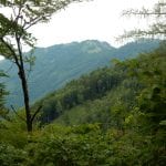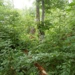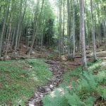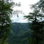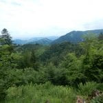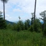 Den Weg müssen wir uns aber selbst aber, denn der, den es hier einmal gab, der ist längst komplett verwachsen und nicht zu finden. Hin und wieder treffen wir auf ein paar vergilbte Markierungen, aber die helfen auch nicht weiter. Bevor wir zum Gipfel kommen, biegen wir oben nach rechts ab, denn dort gibt es einen zweiten, namenlosen Gipfel, der fast genauso hoch ist (1.076m) ist. Keine Name, aber dafür mit viel Aussicht.