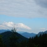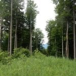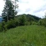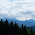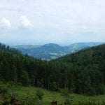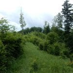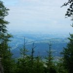 Dann zum Gipfel mit Namen, dafür aber ohne Aussicht (1,079m) und steil über den Nordabhang hinunter. Auf einem schönen Aussichtsplatz (Blick bis ins Mühlviertel) gibt es Jause und dann folgt das letzte weglose Stück hinunter bis zu einer Forststraße (Höhe jetzt: 807m). Die müdet später in eine andere Forststraße über die wir in die Mösern und somit in bekanntes Gebiet kommen.