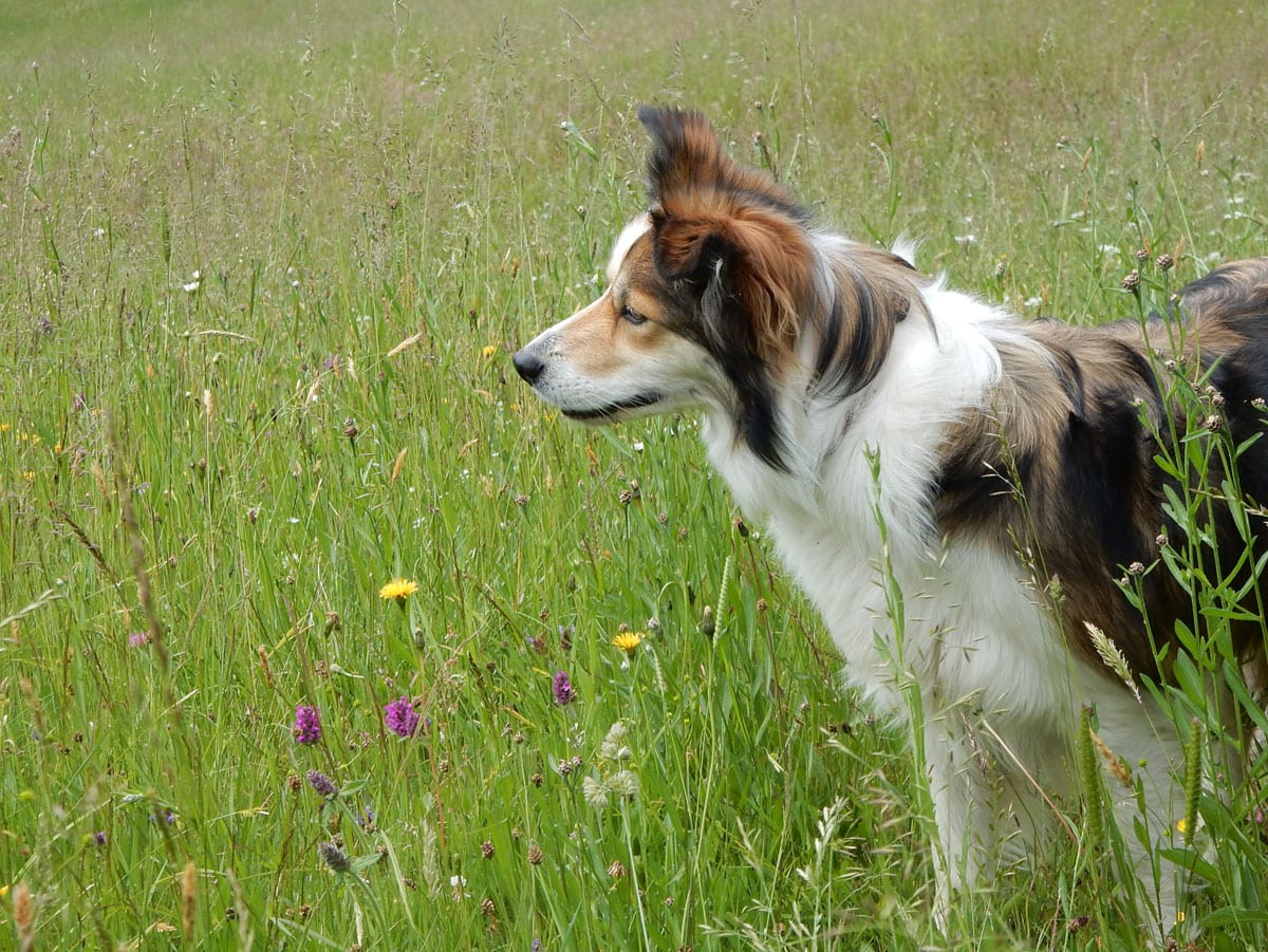 so schön grün, so viele blümchen, und so hohes gras, dass man euch beide kaum sieht. und