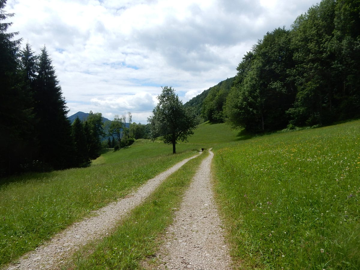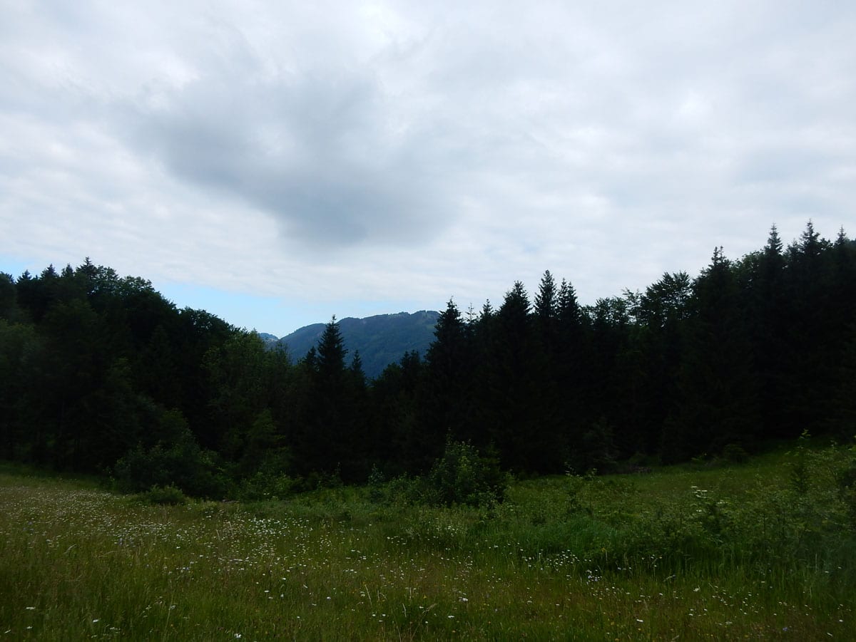 Ein letzter Anstieg auf 990m bringt uns zum Weg zur Rosenegger Alm und zum Bilderstadel. Die Runde ist (und war) perfekt!