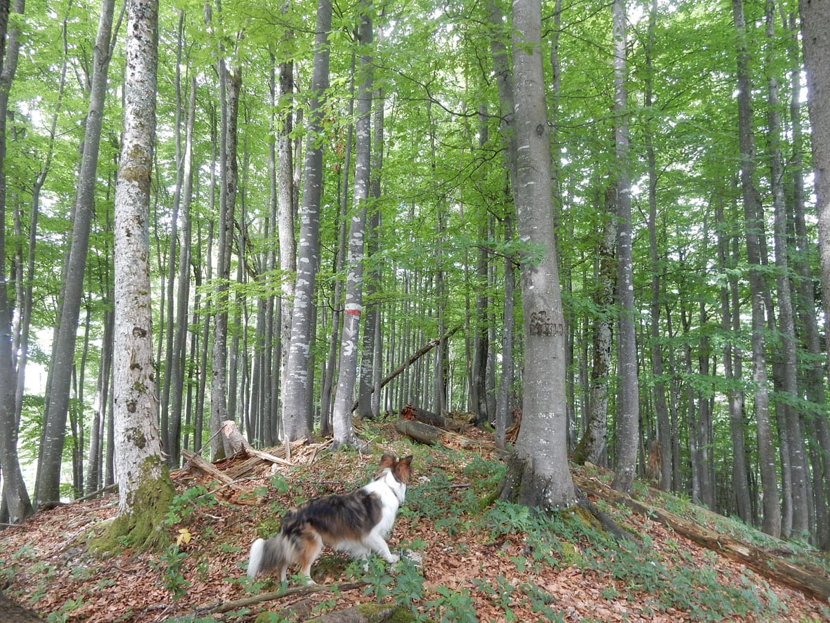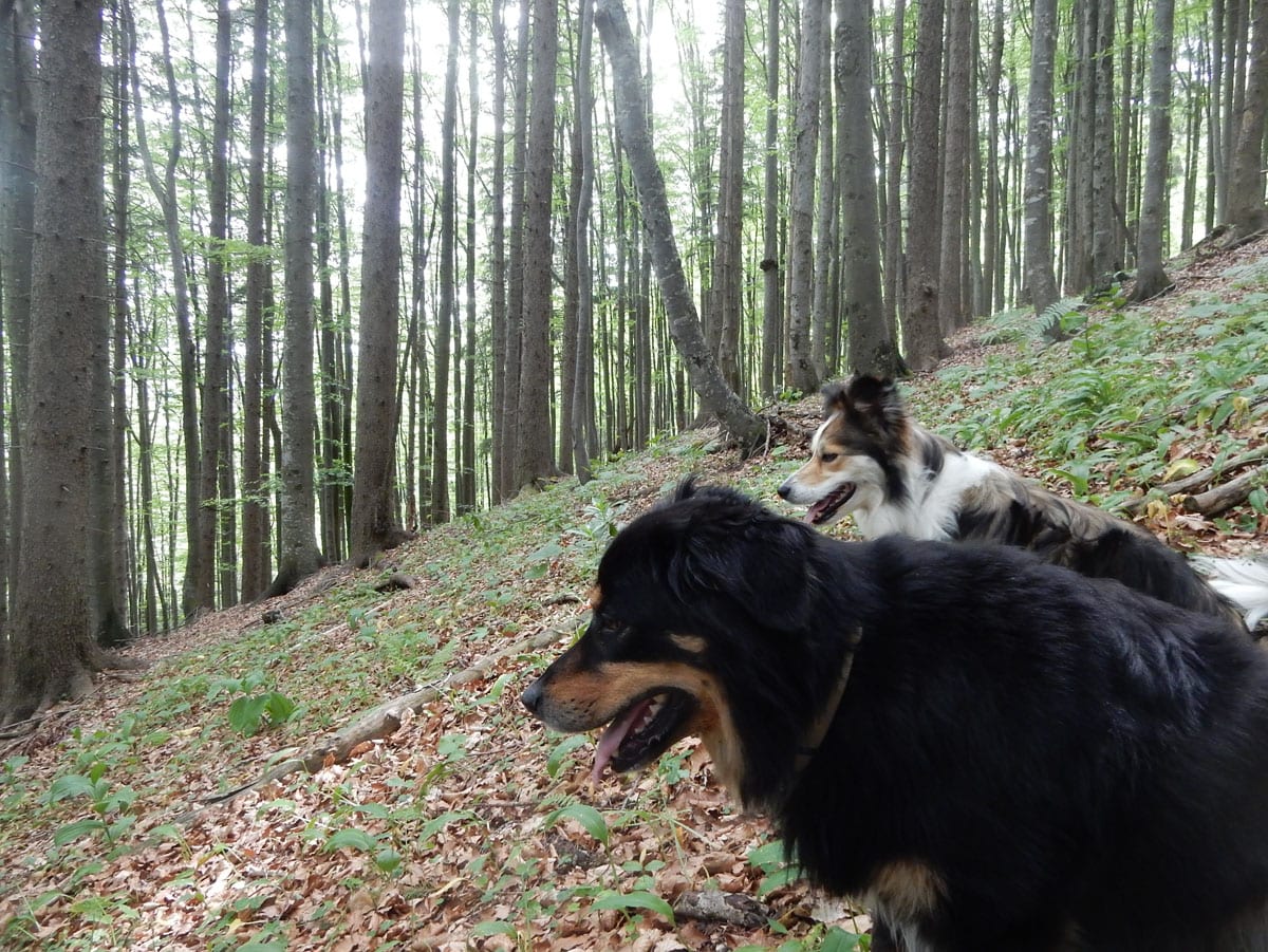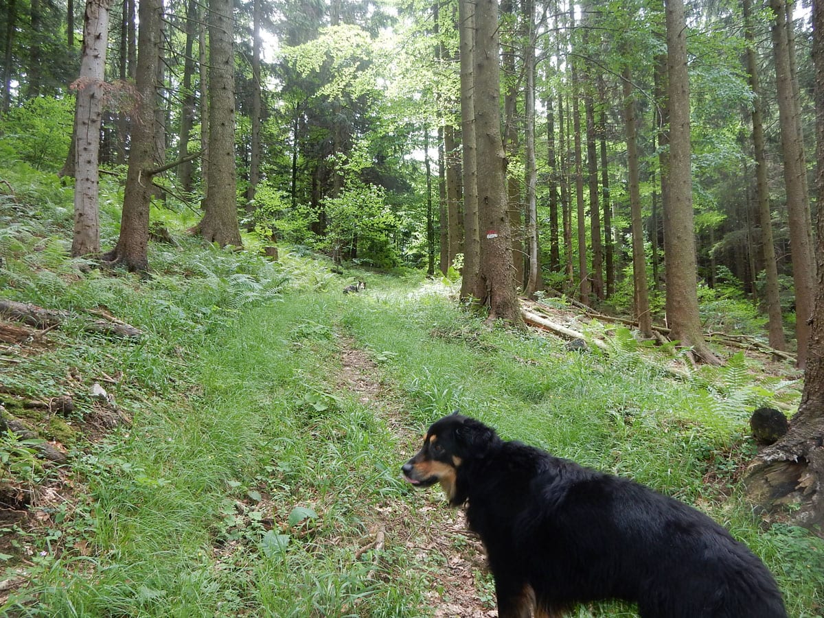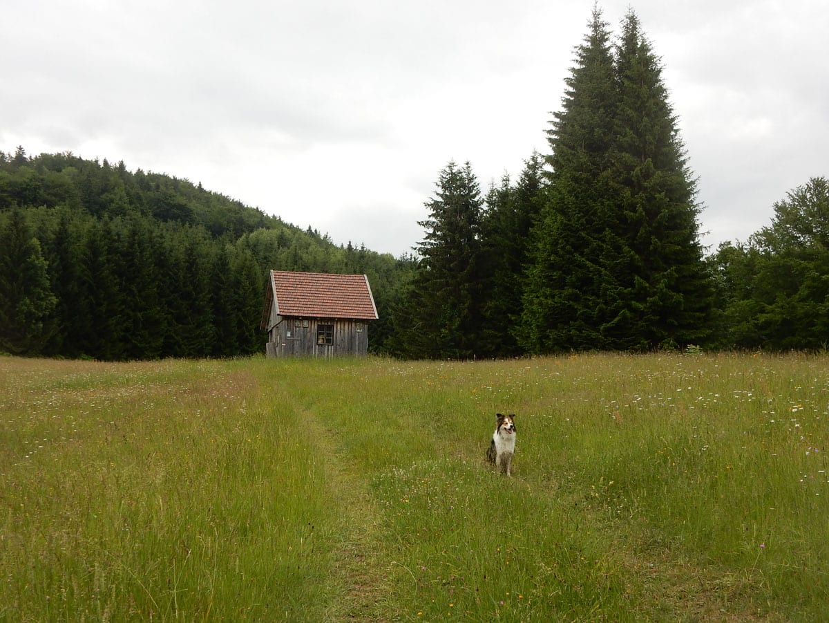 Beim Aussteigen 11°, durchgehende Wolkendecke. Oder anders gesagt: Hundewetter! Los gehts zum Einsiedlerkogel.