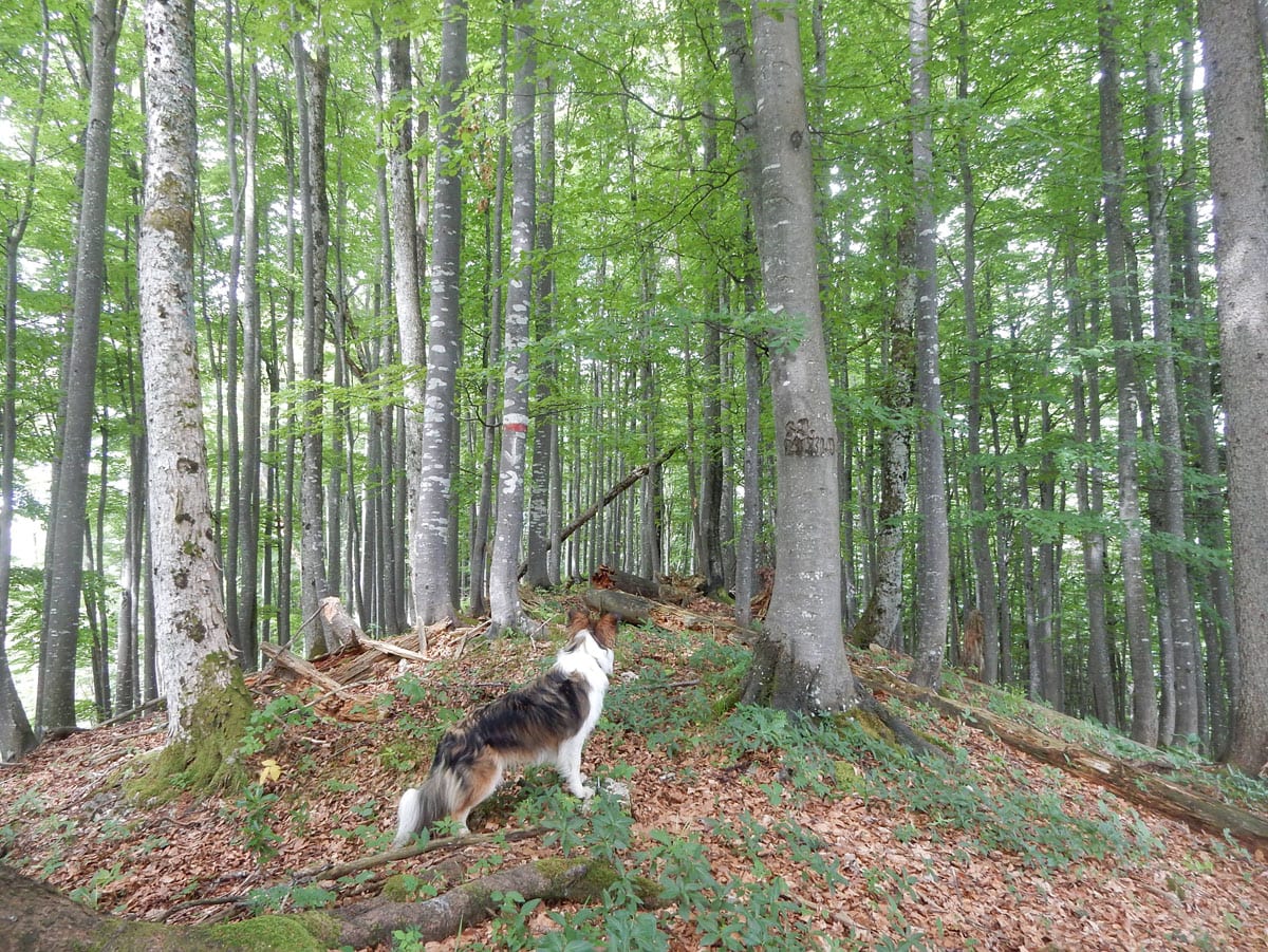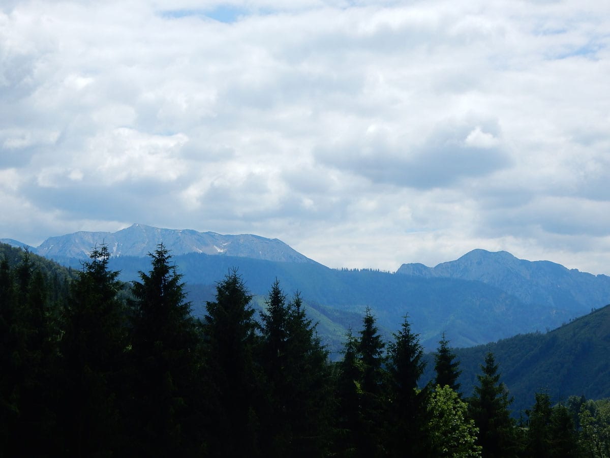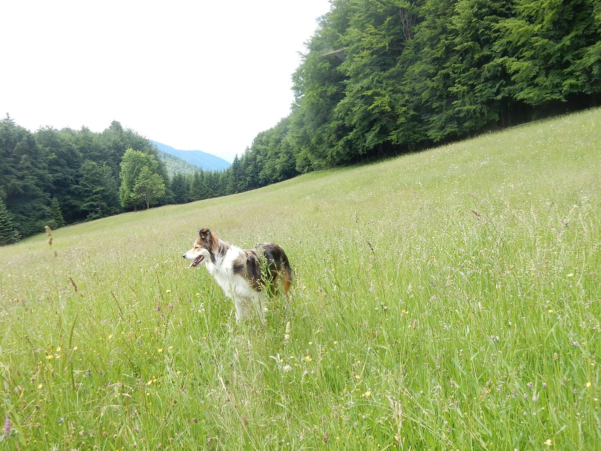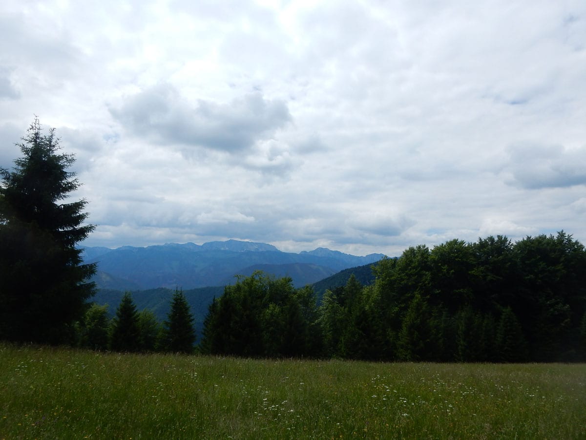 Beim Aussteigen 11°, durchgehende Wolkendecke. Oder anders gesagt: Hundewetter! Los gehts zum Einsiedlerkogel.