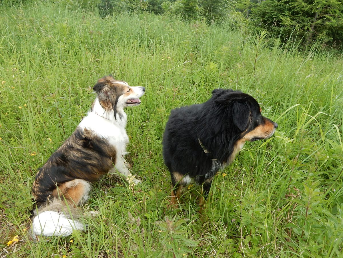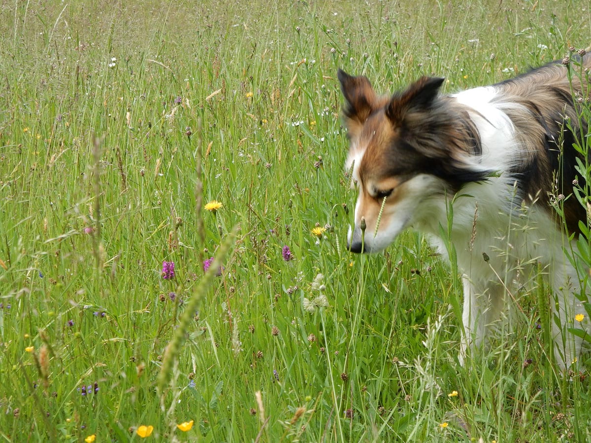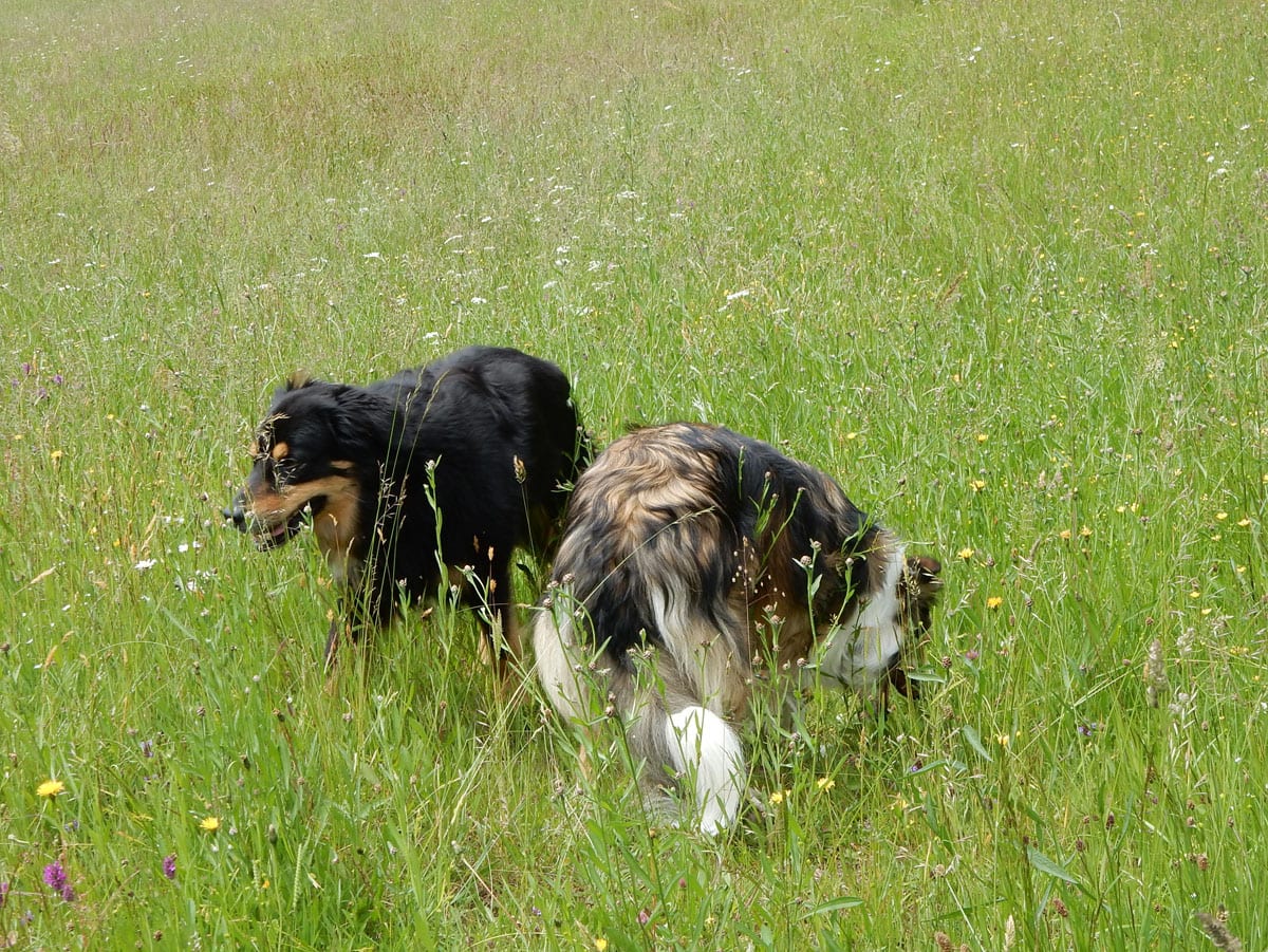 so schön grün, so viele blümchen, und so hohes gras, dass man euch beide kaum sieht. und