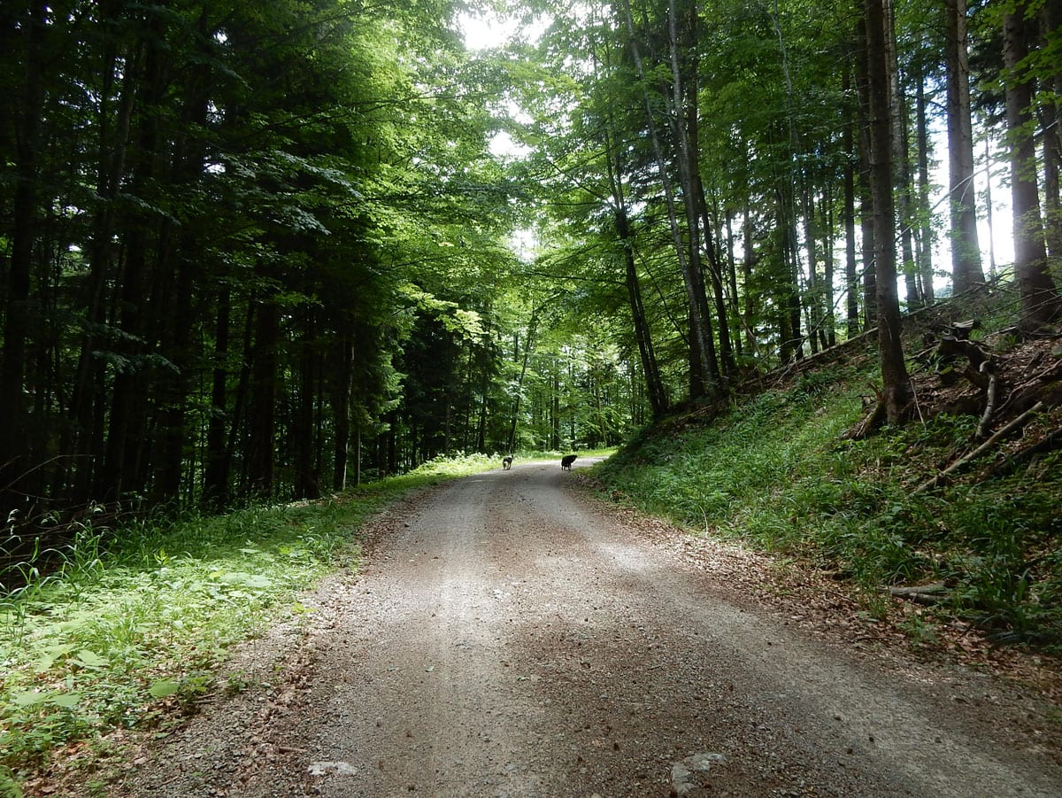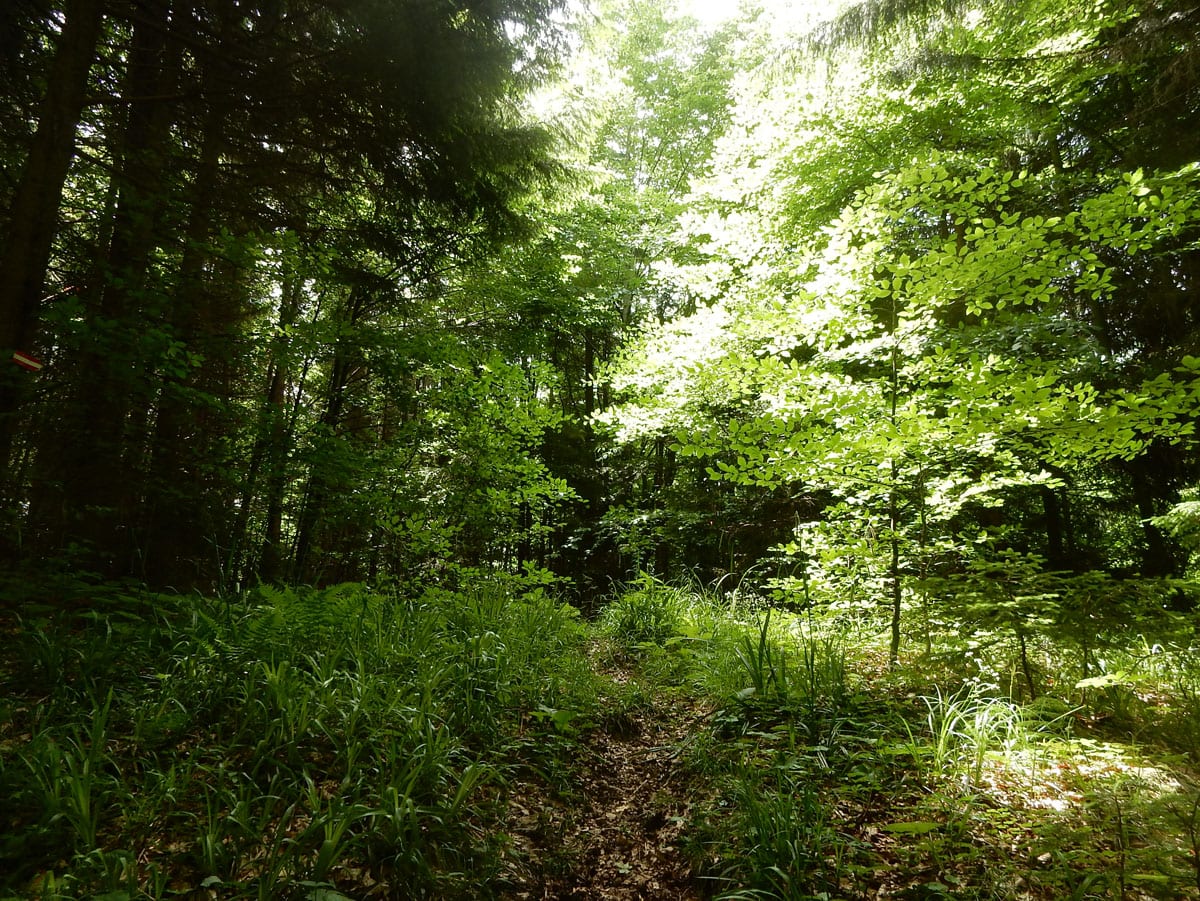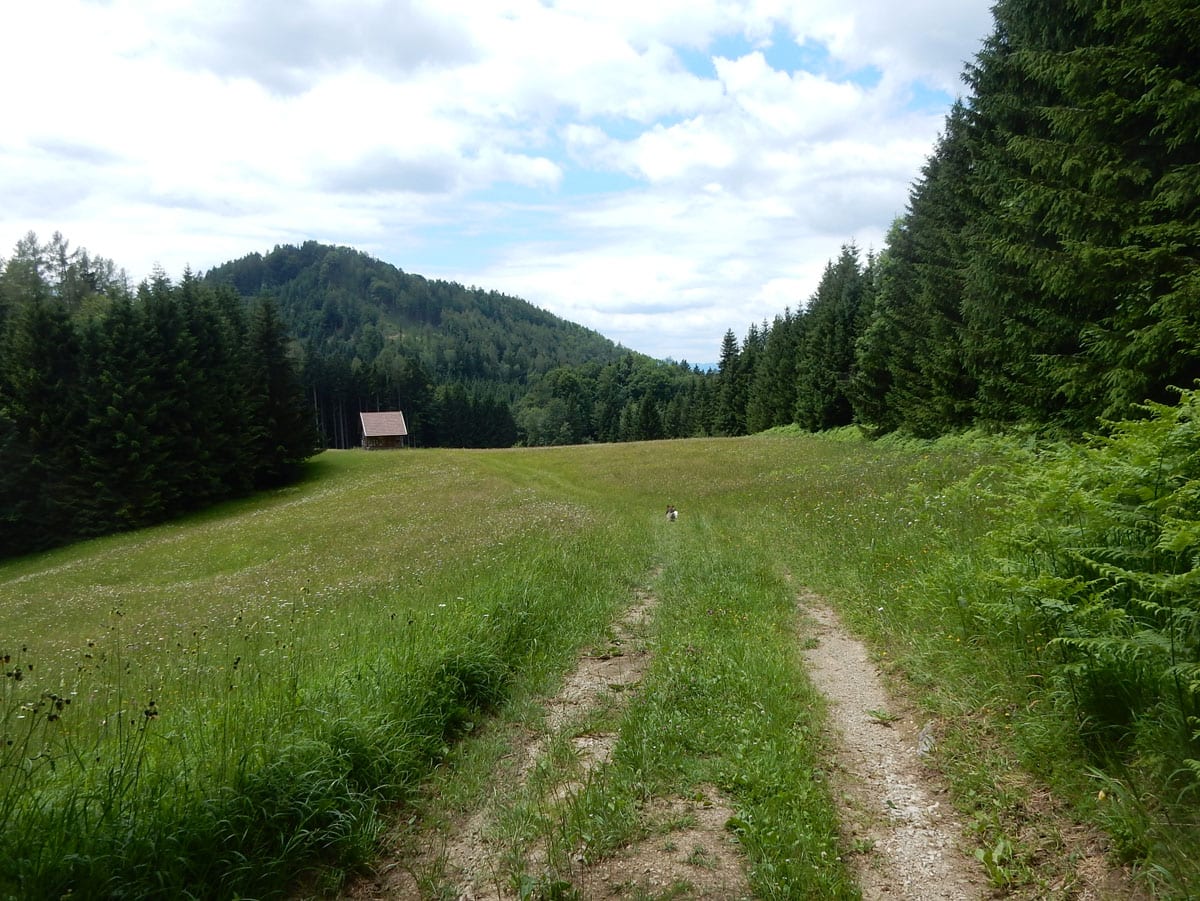 Dort waren wir zwar schon einmal, möchten uns heute aber ein bisserl umschauen, was es dort noch alles gibt. Bei diesem perfekten Wetter rauschen wir nur so dahin. Vorbei am Bilderstadel, dann ein Stück Forststraße bis zur Abzweigung zum Weg hinauf zum Einsiedlerkogel.