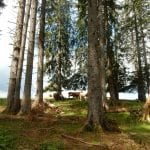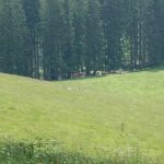 Meine Freude darüber wird recht abrupt beendet, denn als wir beim Bauernkreuz in der Mitte der Alm ankommen sehen wir sie: alle haben sie sich genau dort versammelt, wo wir vorbei müssen – direkt beim Ausgang. Typisch.