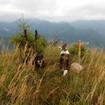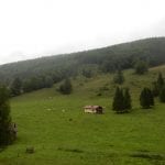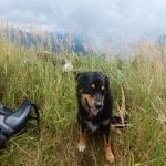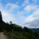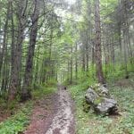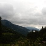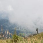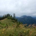 Nieselregen beim Start: das bedeutet angenehme Temperaturen und wenig Leute unterwegs. Auf der Niglalm bedeutet das aber auch, dass wir die ersten paar hundert Meter bergauf über den von den Kühen zertrampelten und gatschigen Weg gehen müssen … na ja, man kann nicht alles haben (und die Ronja freut sich eh über so was).