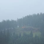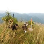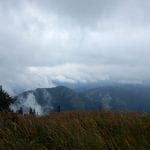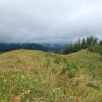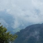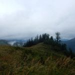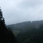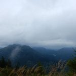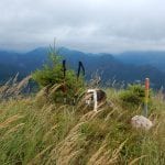 Von hier hat man ansonsten einen tollen Ausblick in alle Himmelsrichungen (wir haben Fotos gesehen!) aber leider nicht heute. Der Nieselregen bleibt uns bis kurz vor dem Gipfel fast durchgehend erhalten. Oben angekommen blitzt zwar genau in diesem Moment die Sonne durch, aber runderum bleibt trotzdem alles in den Wolken.