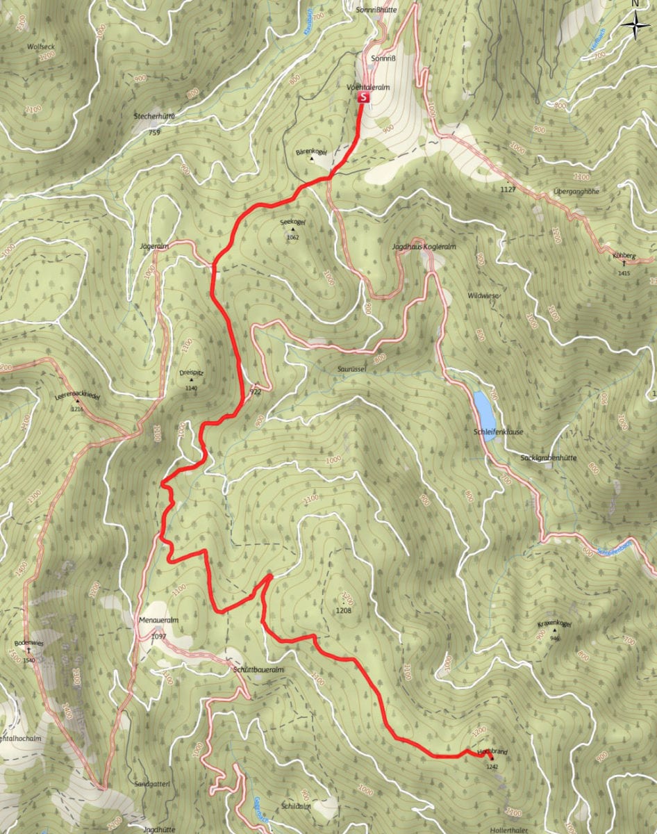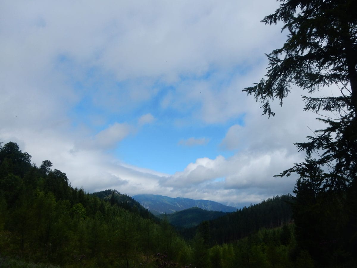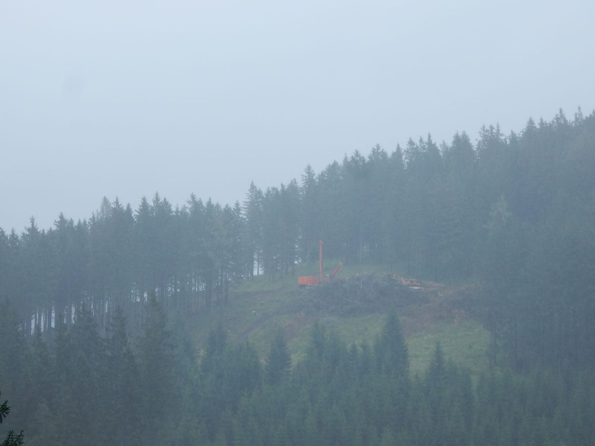 Es ist eine sehr gemütliche hin-und-zurück-Tour ohne großartige Steigungen. Dafür viel Forststraßen, die aber vom Regen der letzten Tage richtig federnd geworden sind. Die Route ist einfach: Niglalm Richtung Schüttbauernalm, vor der Alm links abbiegen und dann weiter bis zum Gipfel des Hochbrand (1242m). Nur die letzten 200m sind weglos.
