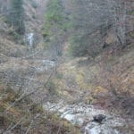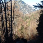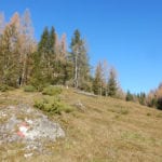 Über den Steyrsteg und dann die Krumme Steyrling entlang kommen wir zur Seilsicherung, die ein freundlicher Mensch am Anfang des Steiges zur Maierreith-Alm montiert hat (danke an Unbekannt!). Da muss sich s’Herrl nicht mehr so über den Felsen hinauf balancieren :-). Auch auf der dritten Alm sind keine Rindviecher mehr, so spät im Jahr sind die schon alle unten.