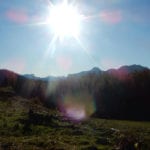 Im Schatten ist es beim Abmarsch aber noch kühl, doch wir wandern der Sonnen entgegen. Vom Haslergatter zur Groißnalm und weiter zur Weingartalm. Jetzt ist es ein Sonnentag geworden und wir werfen uns für eine Pause in die Wiese (der Boden trocken, Ausblick bis Unendlich und blauer Himmel – den Menschen gefällt das, hab ich mir sagen lassen). Die Hütte ist auch endlich fertig renoviert und die Alm schaut jetzt insgesamt sehr ordentlich aus.
