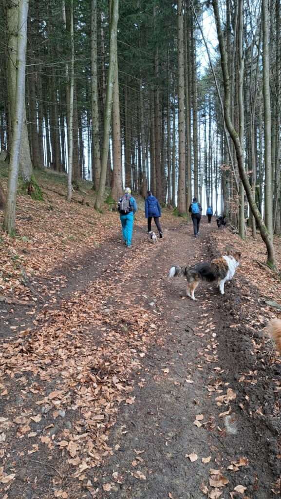 Der Schnee ist weg und heute am Nachmittag soll er wiederkommen: wie bestellt für unsere 3. Hundeschule-Winterwanderung 2026.