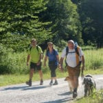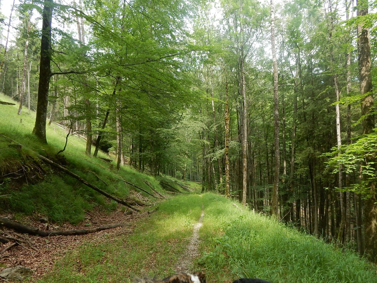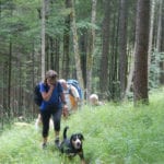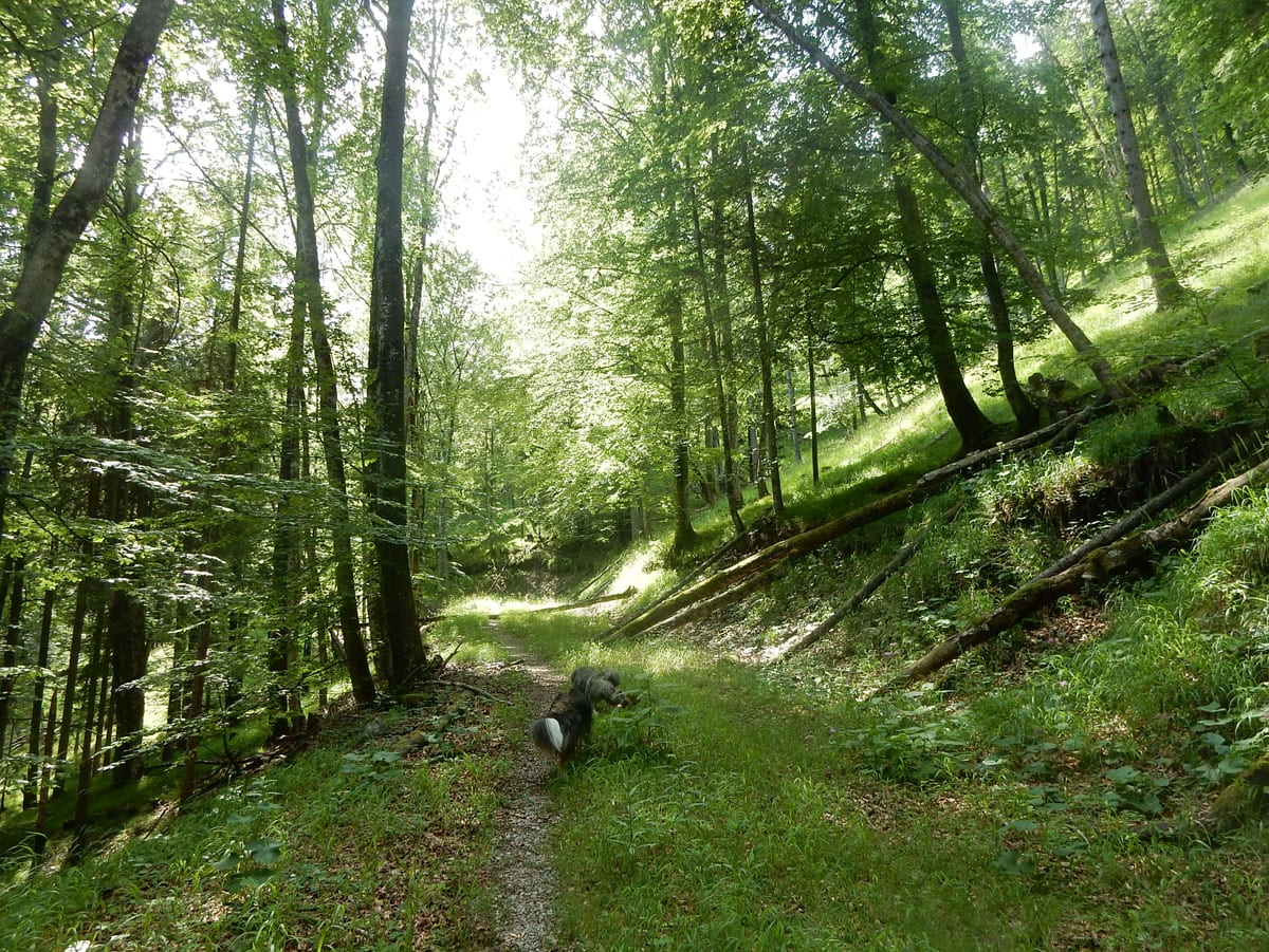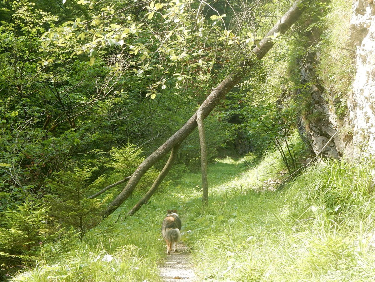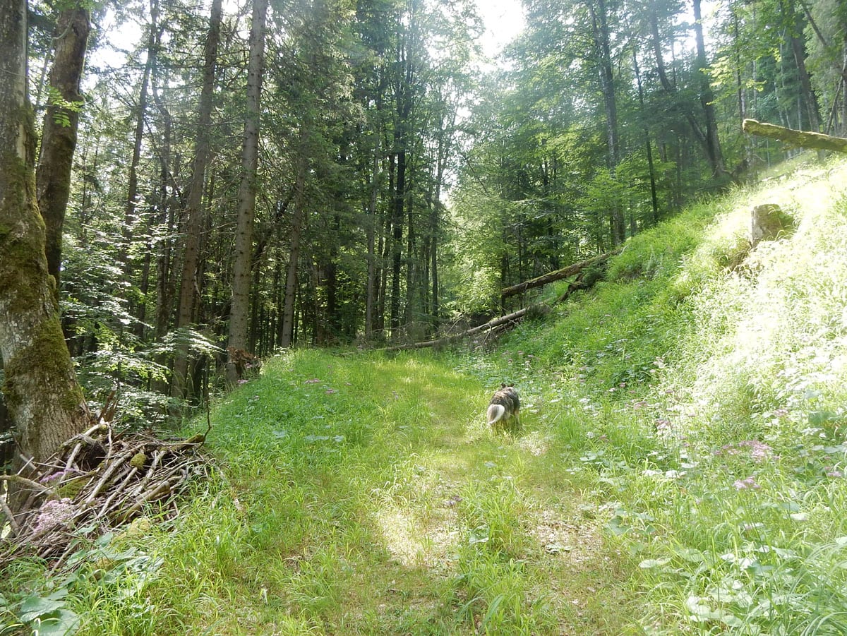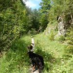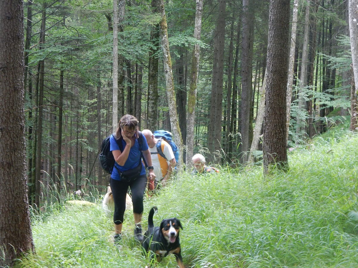 Also, auf geht es, das Wetter wird am Vormittag perfekt sein. Außer uns bewegt sich heute kaum jemand auf unserem Weg, wir können also herum toben, wie es uns gefällt. Am Anfang ist die Kira noch etwas nervös – und macht sich lautstark bemerkbar – aber mit der Zeit stellt sie fest, dass Wandern in der Gruppe wirklich fein ist!