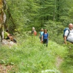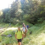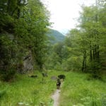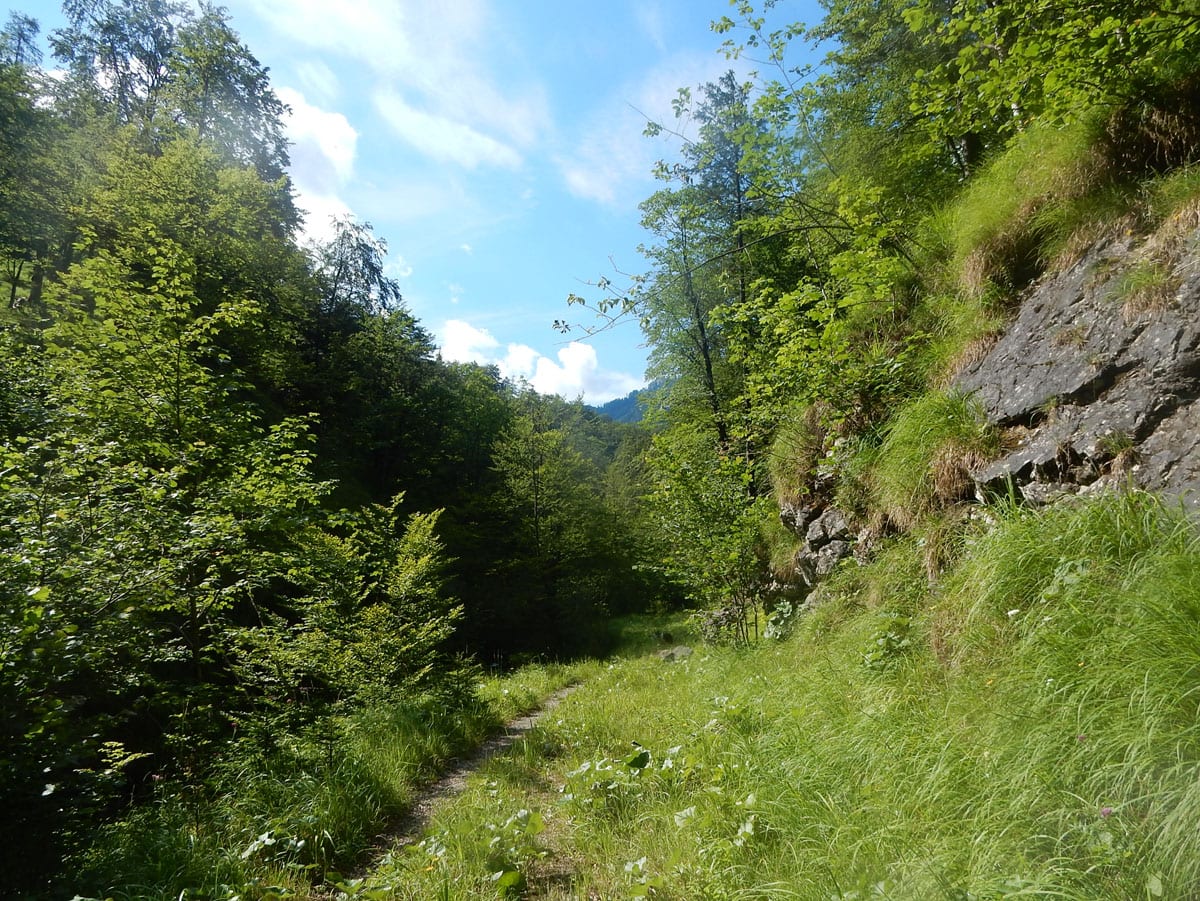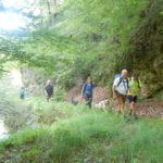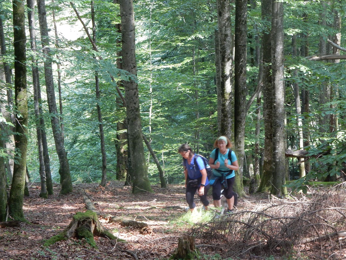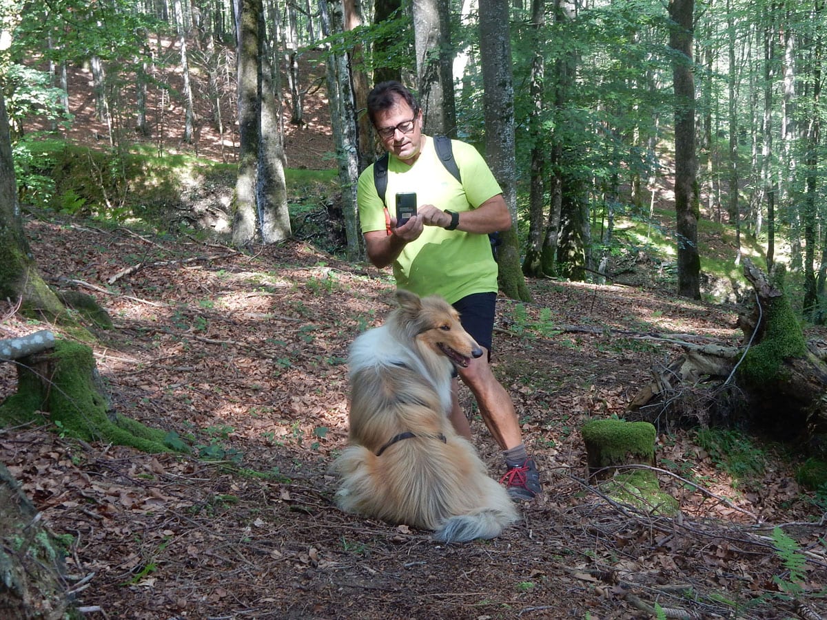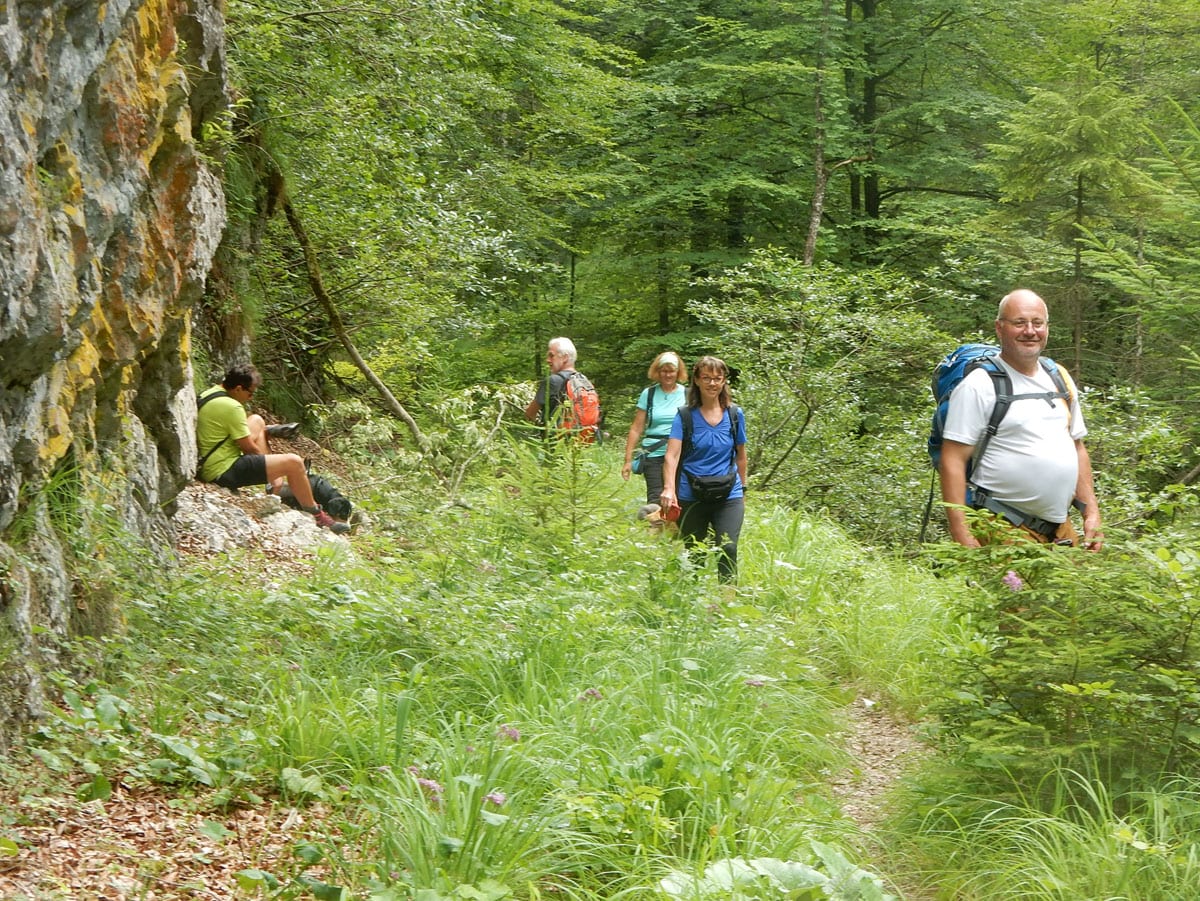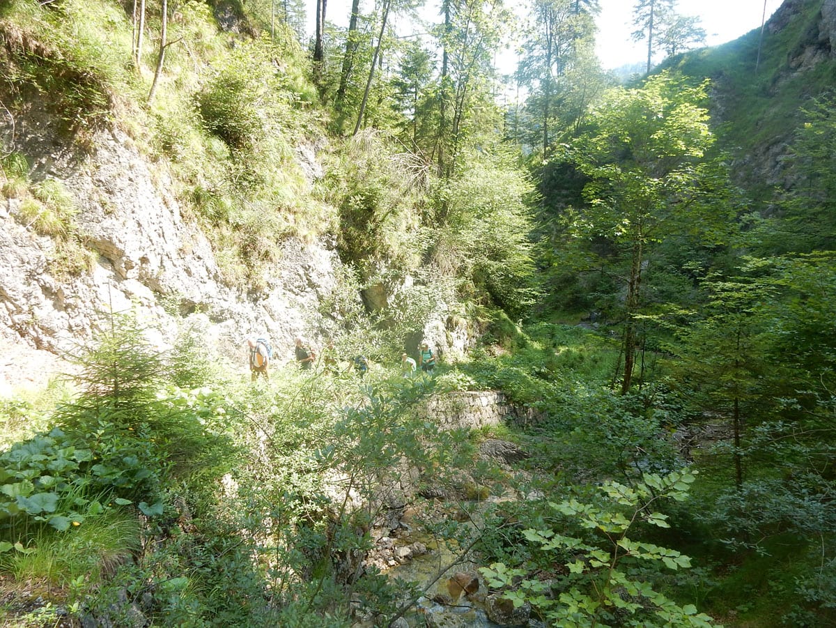 Also, auf geht es, das Wetter wird am Vormittag perfekt sein. Außer uns bewegt sich heute kaum jemand auf unserem Weg, wir können also herum toben, wie es uns gefällt. Am Anfang ist die Kira noch etwas nervös – und macht sich lautstark bemerkbar – aber mit der Zeit stellt sie fest, dass Wandern in der Gruppe wirklich fein ist!