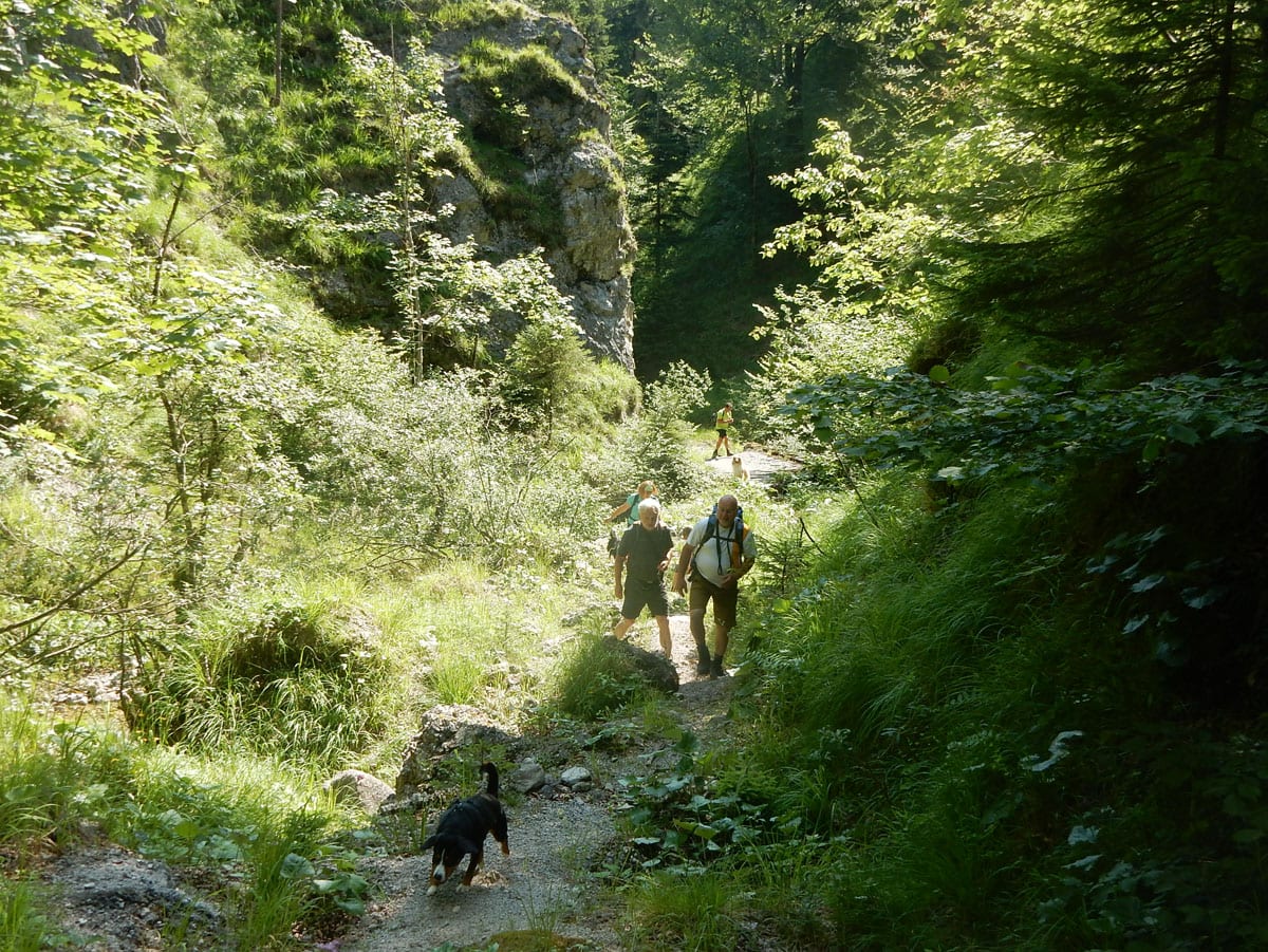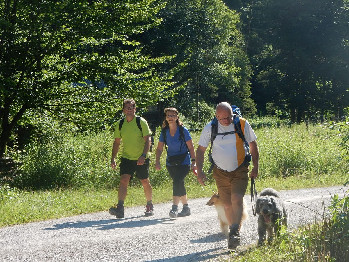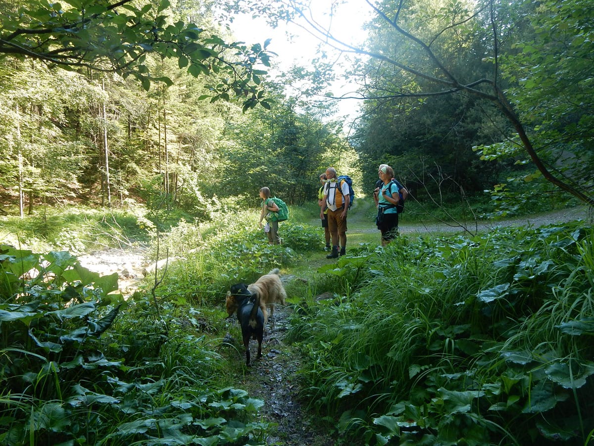 Heute ist wieder Tag der Hunde: das ist ein Tag, an dem wir mit unseren Freunden den Weissenbach entlang wandern. Heute sind die Mina, die Kira – beide zum ersten Mal – die Ninja und der Mato mit ihren Menschen dabei (7 Menschen und 6 Hunde ergibt das insgesamt).
