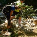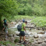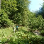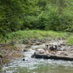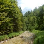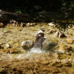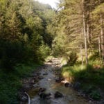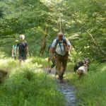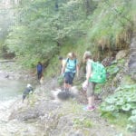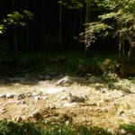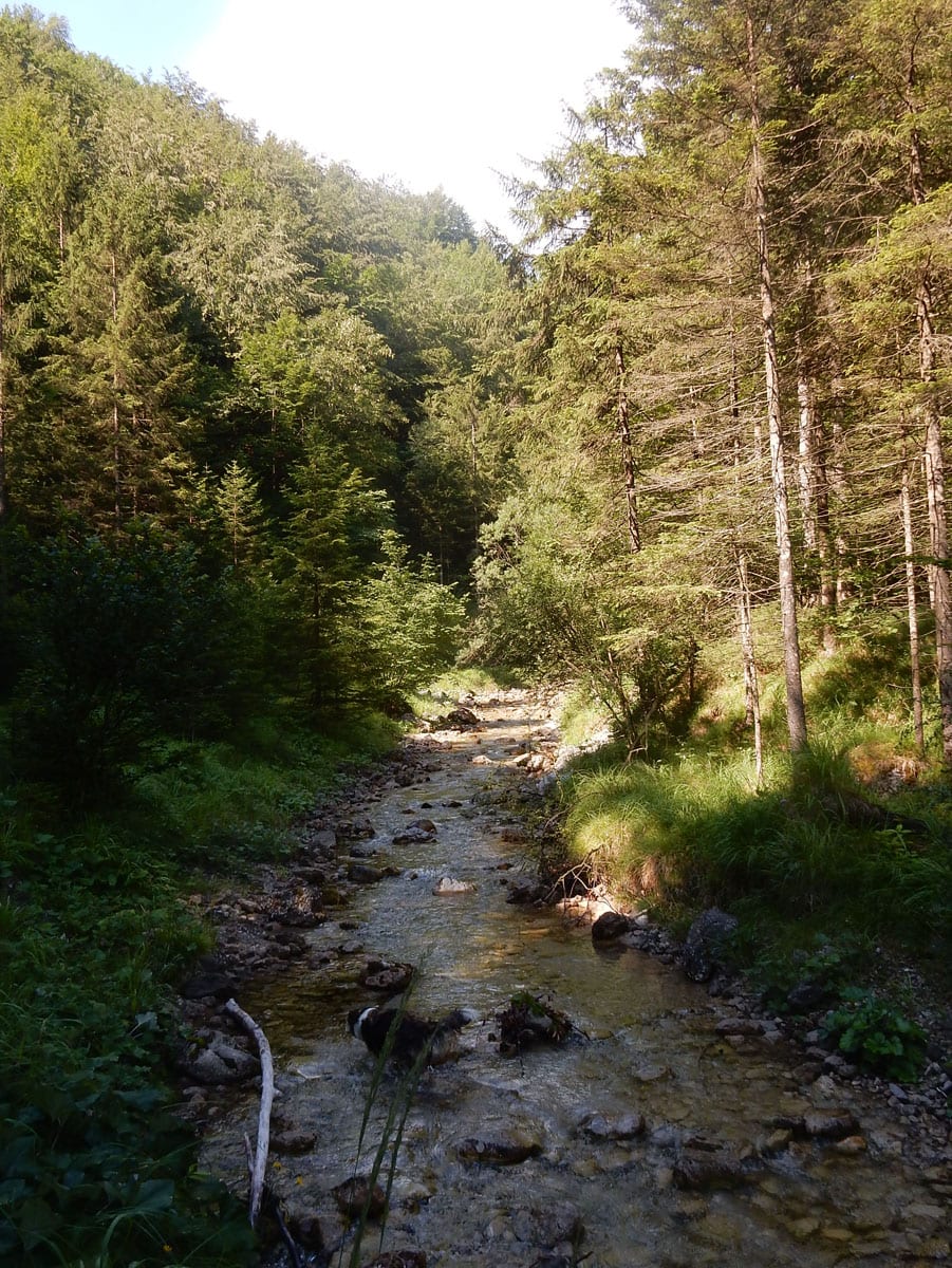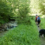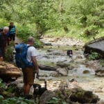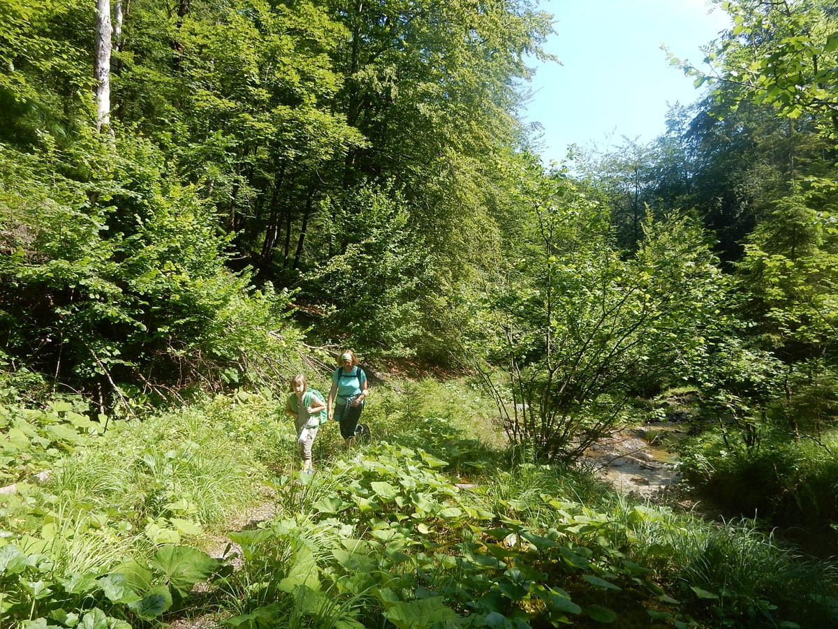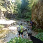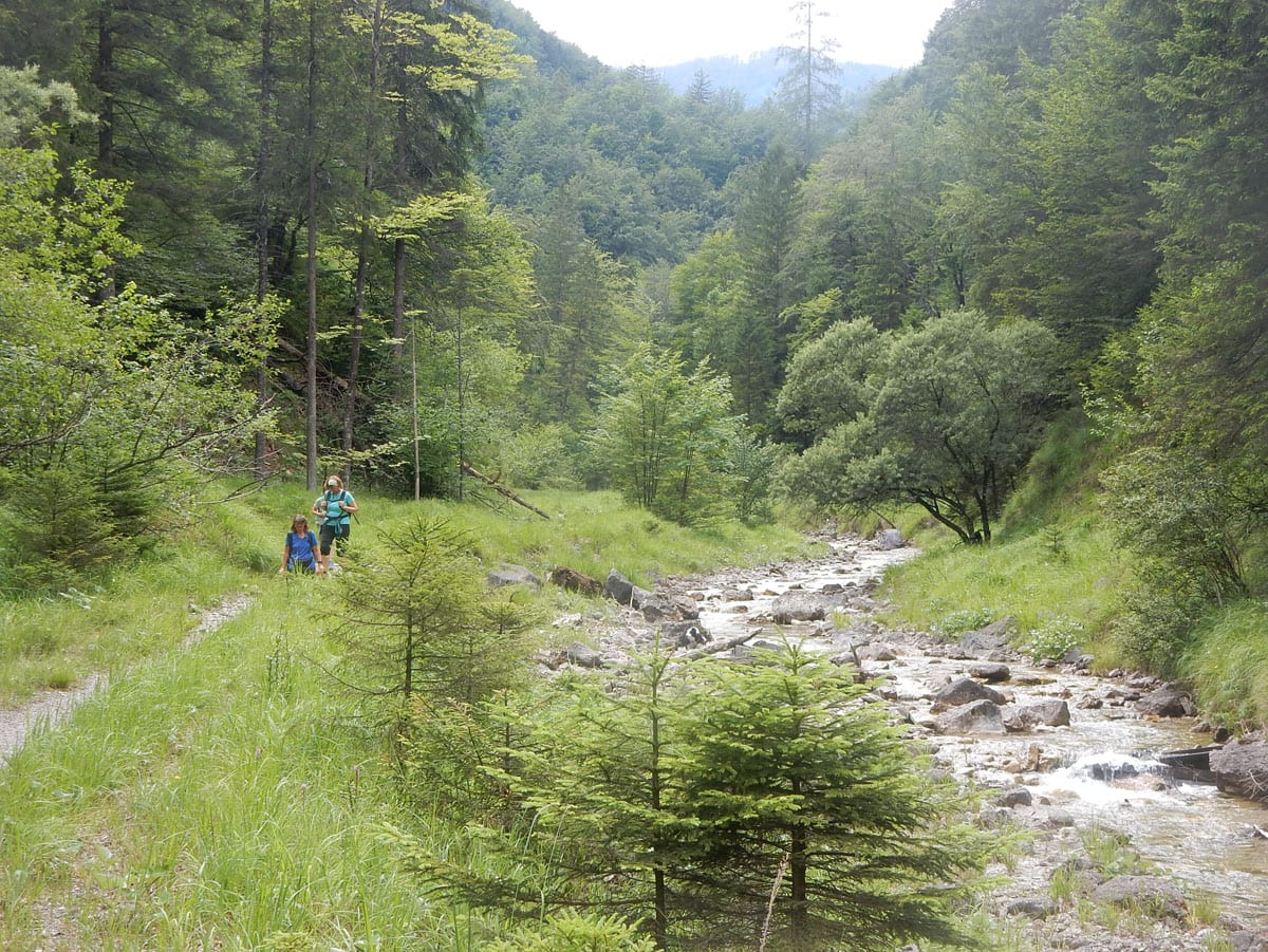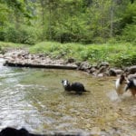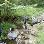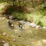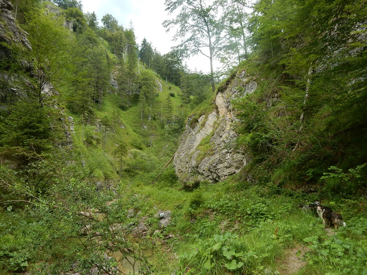 Mina springt bei jeder Gelegenheit in den Bach, nur die Ninja ist etwas zurückhaltend, wenn Wasser unter dem Füßen ist. Aber ganz zum Schluss geht sie schon sehr tapfer durch die Strömung von einem Ufer zum anderen. Und der Mato? Der ist wie immer gleichzeitig vorne, hinten, links, rechts, oben udn unten. Naja, die Buam halt.