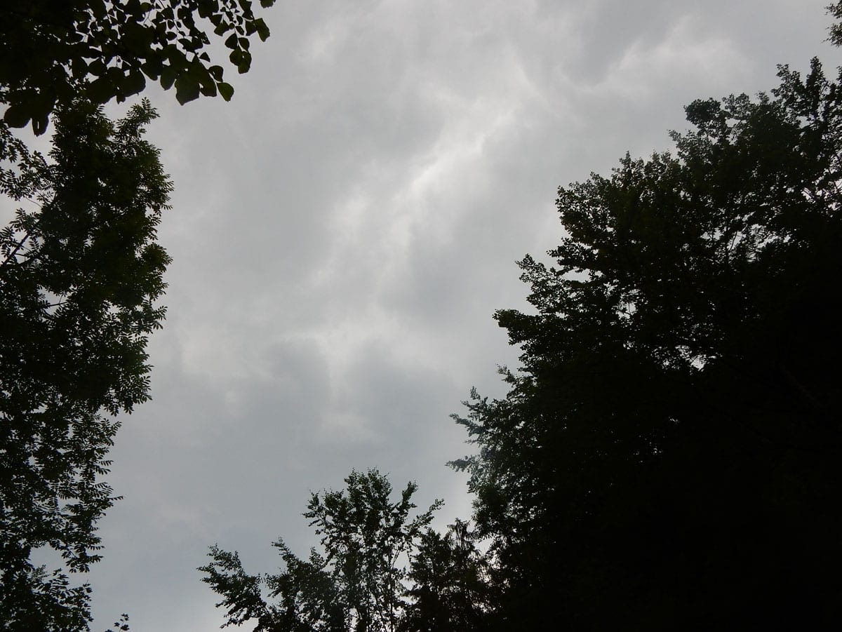 Jetzt ziehen schon dunkle Wolken auf und auf dem letzten Stück der Wanderung donnert es schon recht laut. Das Gewitter ist aber sehr freundlich und schickt uns nur ein ganz wenige Tropfen. Ein paar Minuten sitzen wir dann schon im Auto, als es so richtig schön zu regnen beginnt …