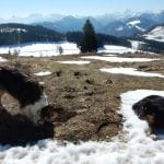 Auf dem Weg von Brunnbach über den Hirschkogelsattel zur Anlaufalm liegt immer mehr Schneee, je höher wir kommen. Weil es am Vormittag noch so kalt ist, trägt uns (auch s’Herrl!) der Schnee und wir müssen uns nicht bei jedem Schritt herauskämpfen. Beim Bauernkreuz auf der Anlaufalm ist alles perfekt zum Genießen: angenehme Temperatur, strahlender Sonnenschein (Sonnencreme-Premiere 2018), blauer Himmel, endloser Ausblick und Jause für alle. Beinahe vergessen wir, weiter zu gehen …