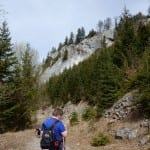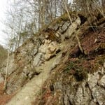 Vom Parkplatz beim Schranken nehmen wir die Standard-Ausweichroute durch den Hanslgraben entlang. Mitten drin stoßen wir dort auf eine Sperre und finden ein paar Meter weiter heraus, warum die da ist: eine ganze Wand schaut so aus, als ob sie nur mehr an ein paar Wurzeln hängt – wird spannend sein zu verfolgen, wie lange die Wand noch oben bleibt.