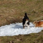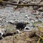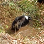 Zurück über die Forststraße über die Ortbaueralm. Wie schon beim Aufstieg zur Anlaufalm finden Kira und Ronja auch hier ein paar Plätze für ein ausgiebiges Schlammbad – na ja, wenns
