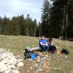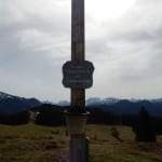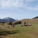 Auf der Anlaufalm herrscht dann paradisische Ruhe: fast keine Menschen, nur bei der Almhütte wird schon heftig gewerkt für die kommende Saison. Wir weichen daher zum Bauernkreuz (1063m) aus und genießen dort eine lange Pause bei Frühlingswetter und mit einem perfekten Ausblick auf die schneebedecken Berge.