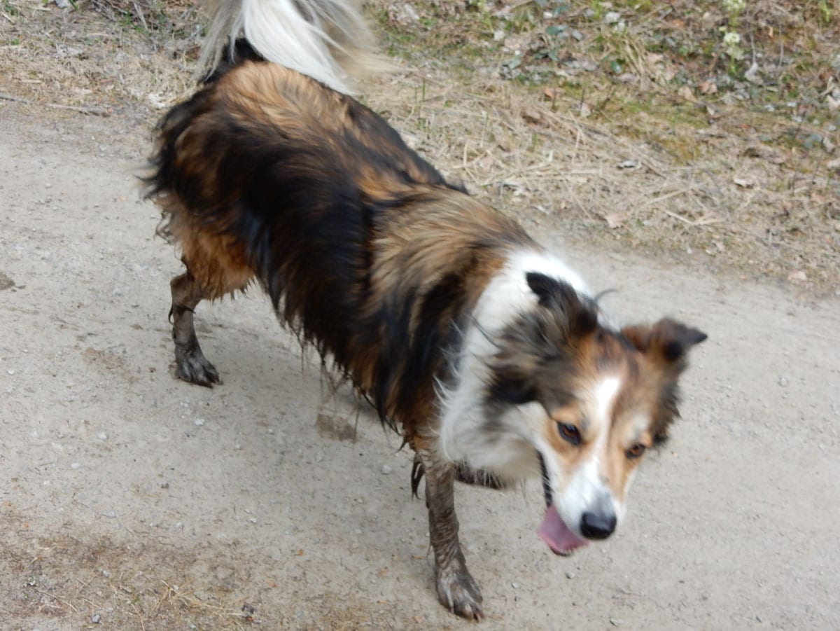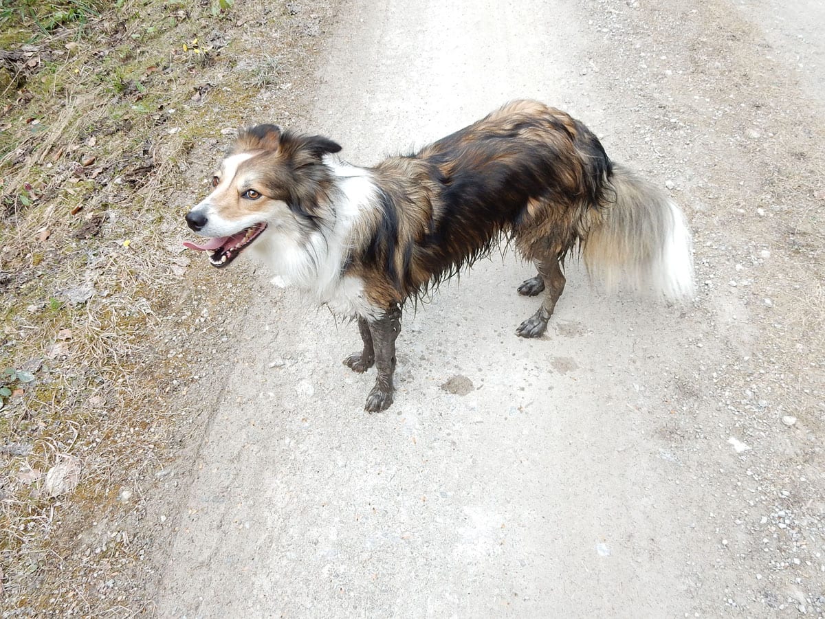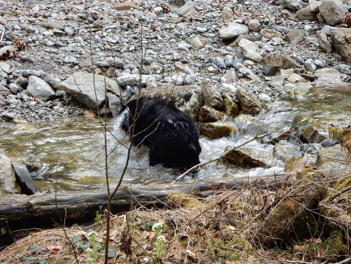 Zurück über die Forststraße über die Ortbaueralm. Wie schon beim Aufstieg zur Anlaufalm finden Kira und Ronja auch hier ein paar Plätze für ein ausgiebiges Schlammbad – na ja, wenns