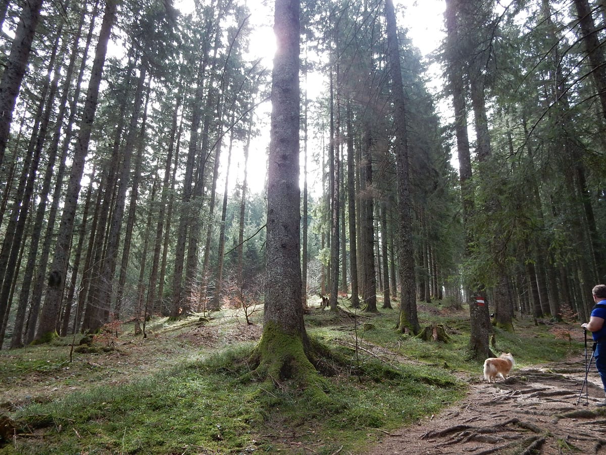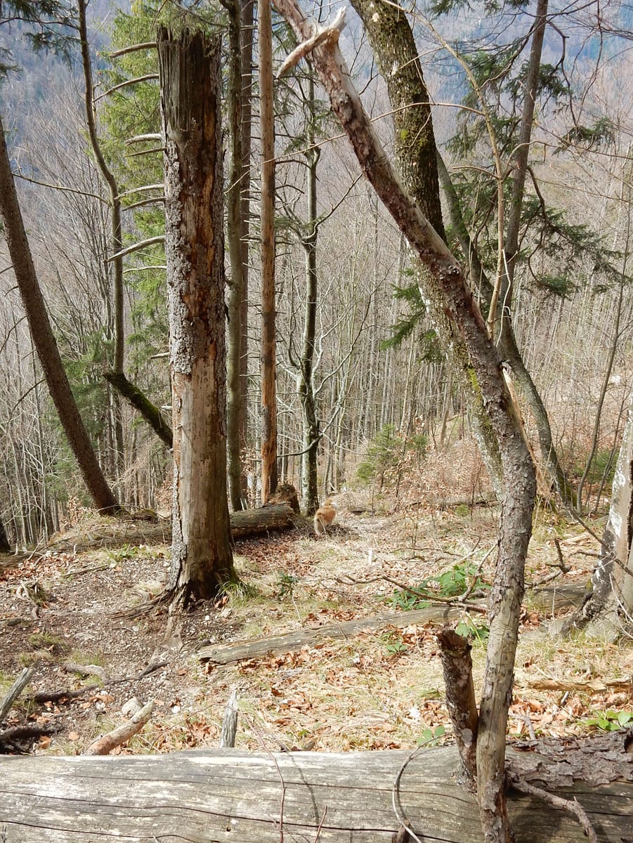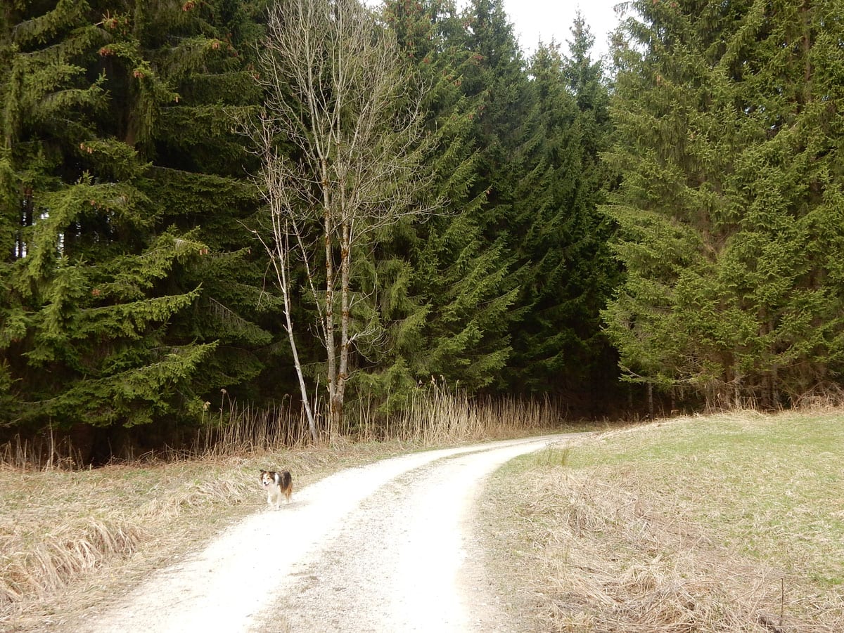 Weniger spannend ist kurz darauf ein wild gewordener Ortsansässiger (Jäger?), der mit seinem Benzinfresser – ohne Nummertafel – über die Forststraße donnert. Nicht ohne dabei zu versuchen, uns mit bösen Blick zu vertreiben; hat nicht funktioniert, du Vollvuitton, wir bleiben!