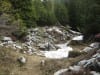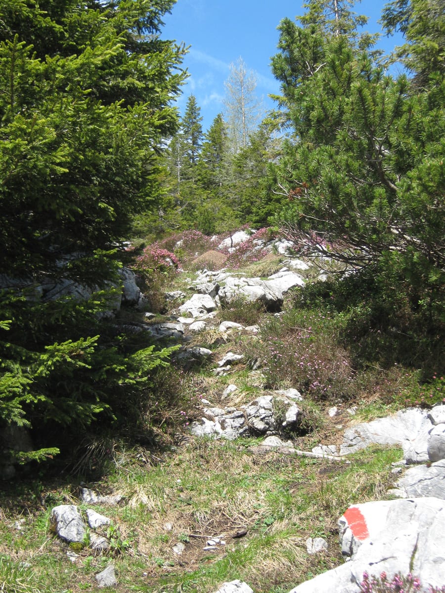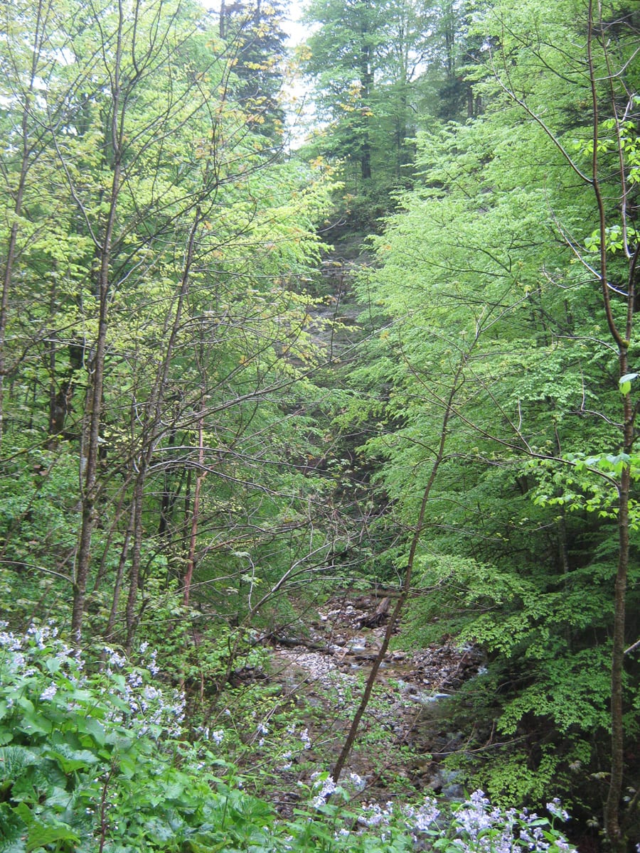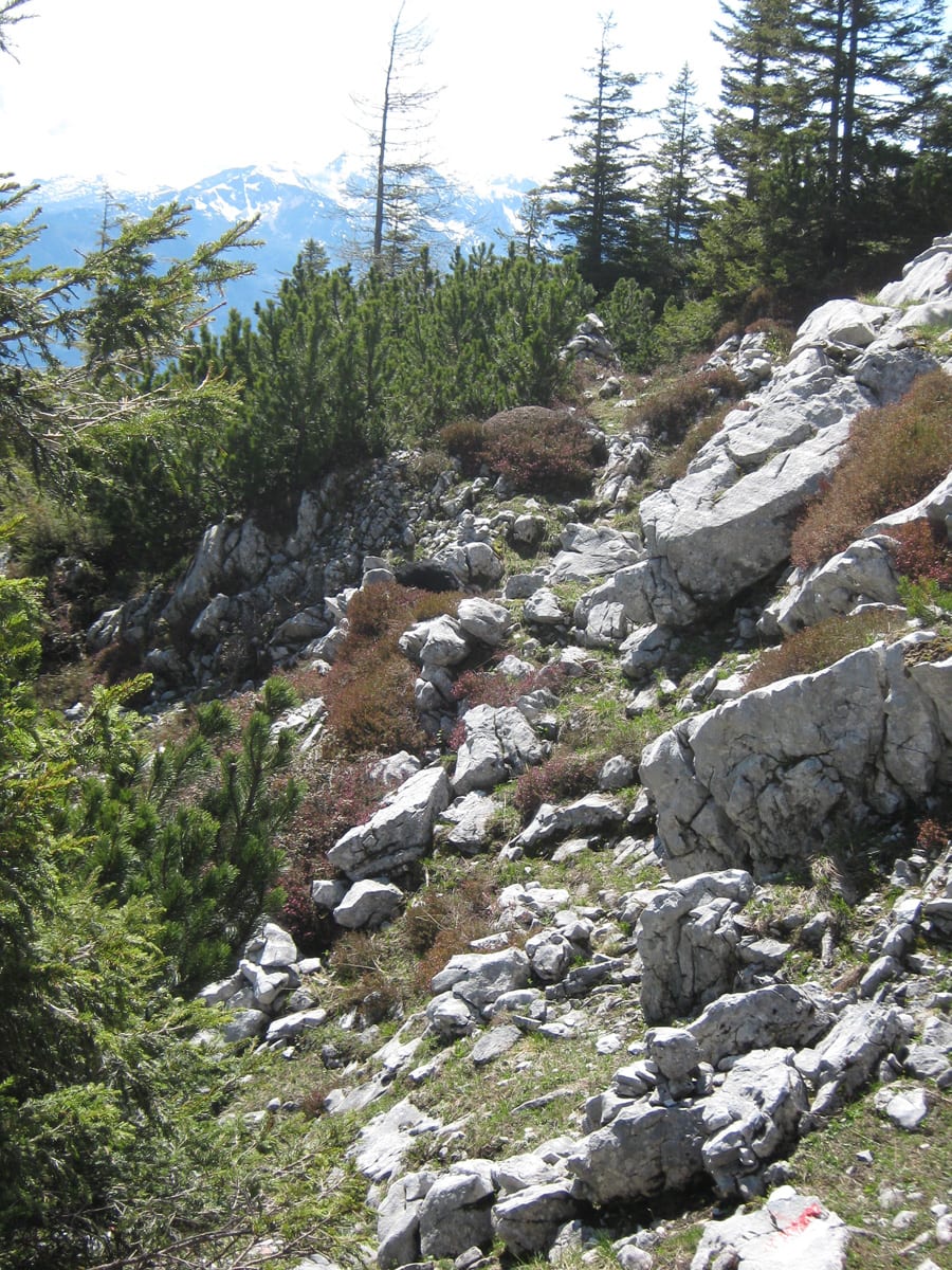 Na, egal; jedenfalls sind wir hier im Nationalpark Kalkalpen und das bedeutet: hier wird kein Baum weggeräumt,. alles bleibt liegen, wo es hinfällt. Das wiederum bedeutet, dass man oft einen anderen Weg suchen muß, weil der markierte versperrt ist.