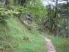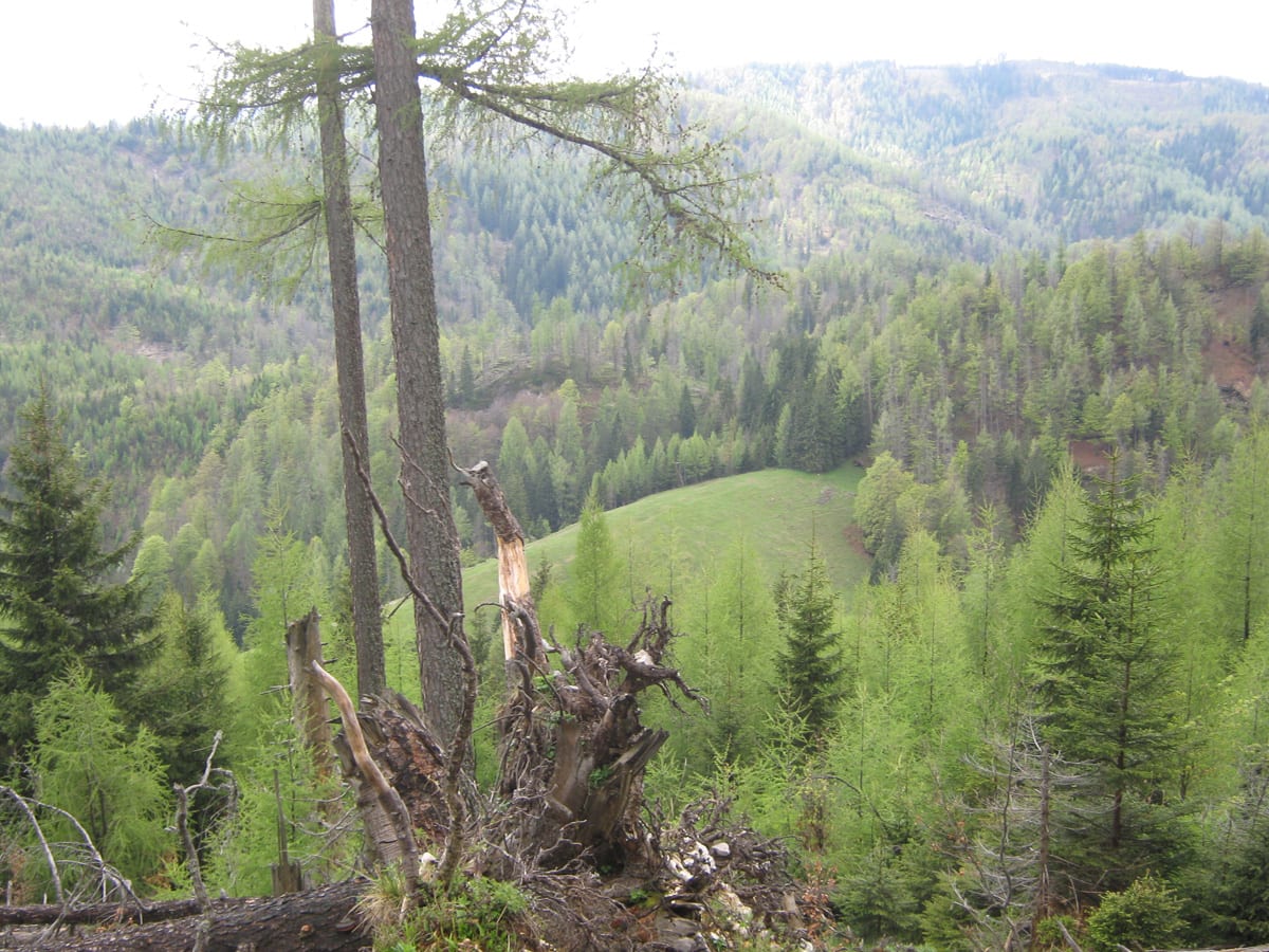 Ziemlich steil durch ein lichten Wald. Der war nicht immer so licht, da muss vor ein par Jahren ein ziemlicher Sturm durchgezogen sein. Einer von den Wegen, auf denen ich dauernd aufs Herrl warten muss – typisch Hinterrad-Angetriebener Zweibeiner.