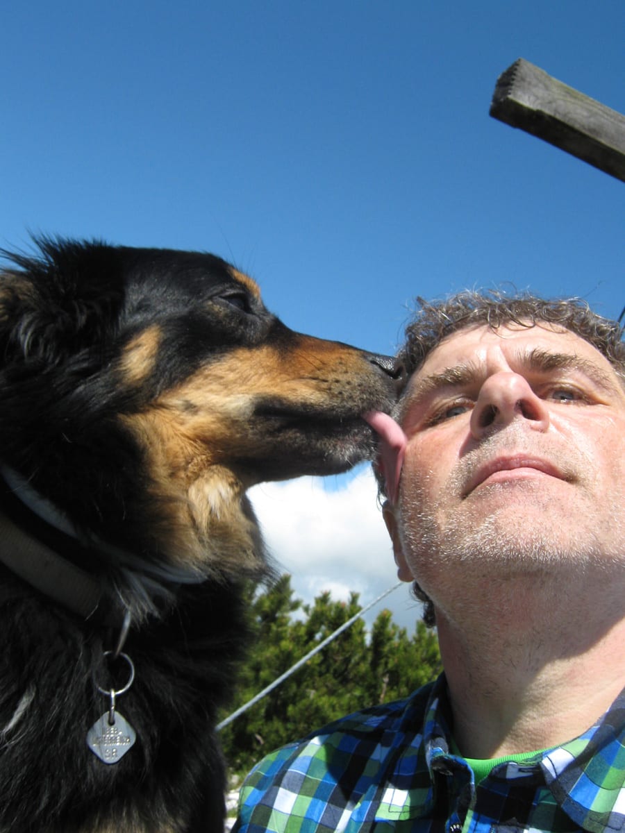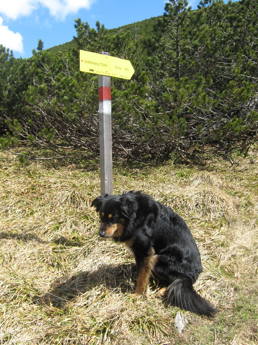 Ab 100 Meter unter dem Gipfel bis ganz oben dann Latschen, Latschen, Latschen. Oben am Großen Größtenberg (1724m) hats dem Herr dann richtig gut gefallen: in der Sonne sitzen und Rundherum-Durch-die Gegend-Schauen. Mit Blick übers Hintergebirge, zum Sengsengebirge, zum Toten Gebirge und die Haller Mauern gibt es da aber auch viel zu sehen.
