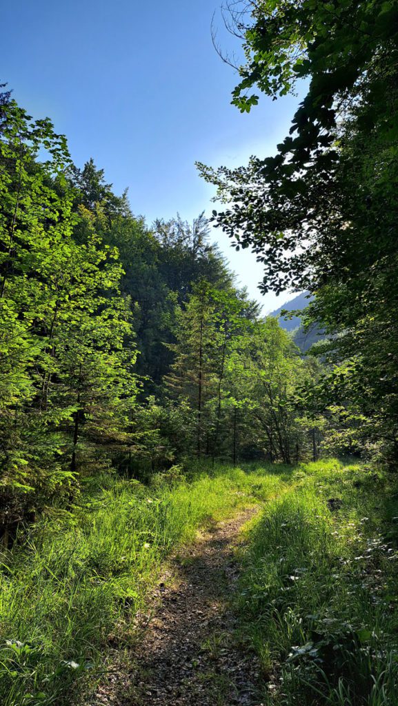 Bevor die Hitze kommt, schaffen wir es bis zur Auer-Alm-Hütte, weiter muss es aber nicht sein, denn in der Sonne (jetzt ist es kurz nach 9 Uhr) wirds schon sehr, sehr warm.