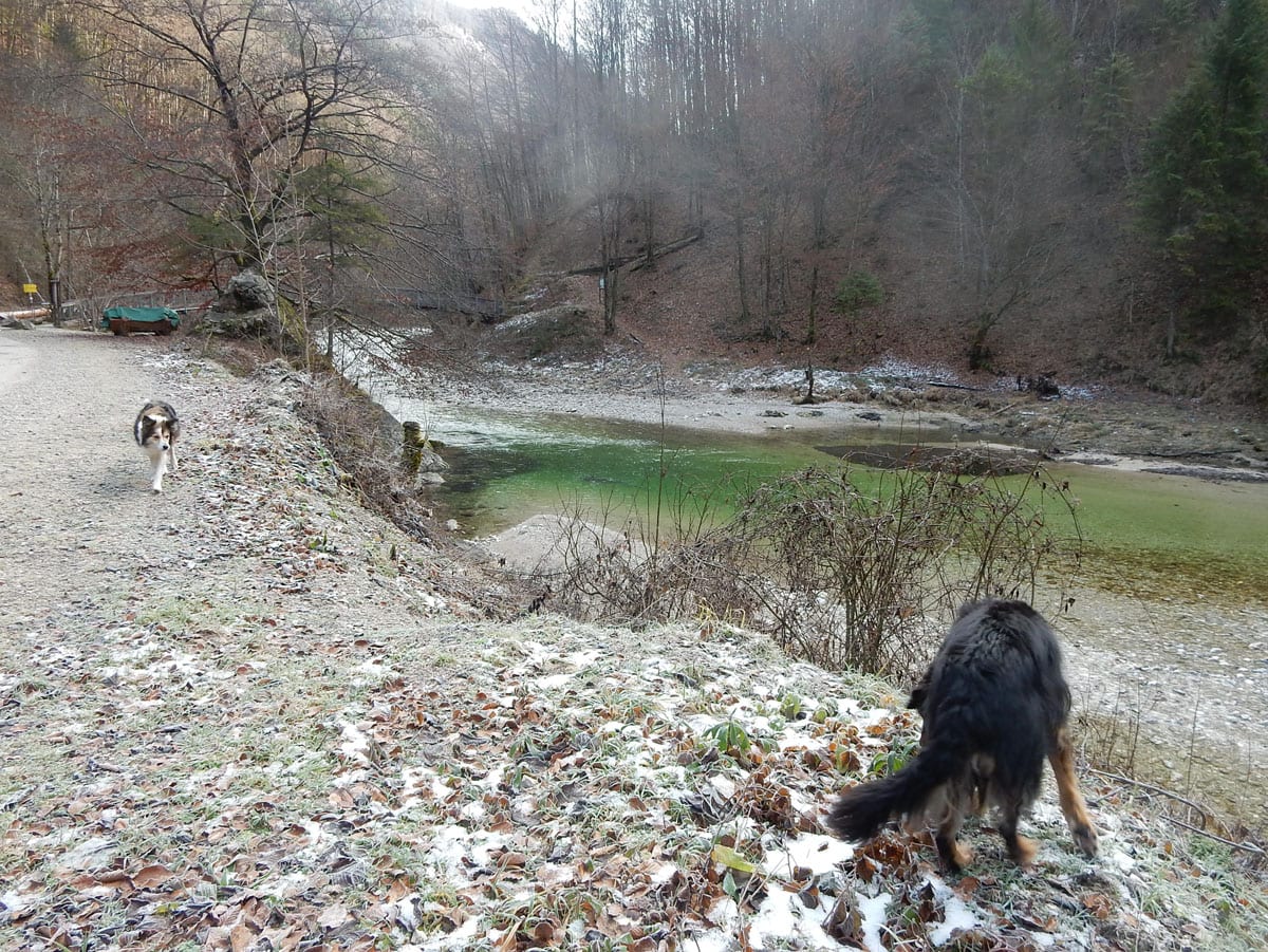 Ja, schade: s’Herrl hat den Fotoapparat in den Bach geworfen (warum eigentlich?) und alle Fotos sind davon geschwommen; und der Apparat hat es auch nicht überlebt …