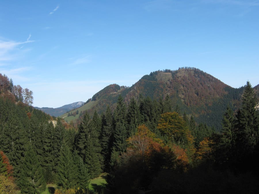 Eingezwängt zwischen dem Gamsstein und dem Almkogel und dessen bergigen Brüdern liegt der Höhenberg ein bisserl vergessen  oberhalb von Brunnbach. Es gibt keinen Weg bis ganz hinauf, dabei sieht man den Berg schon von Brunnbach aus.
