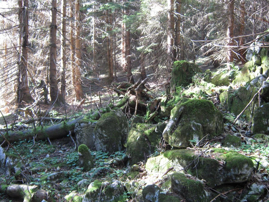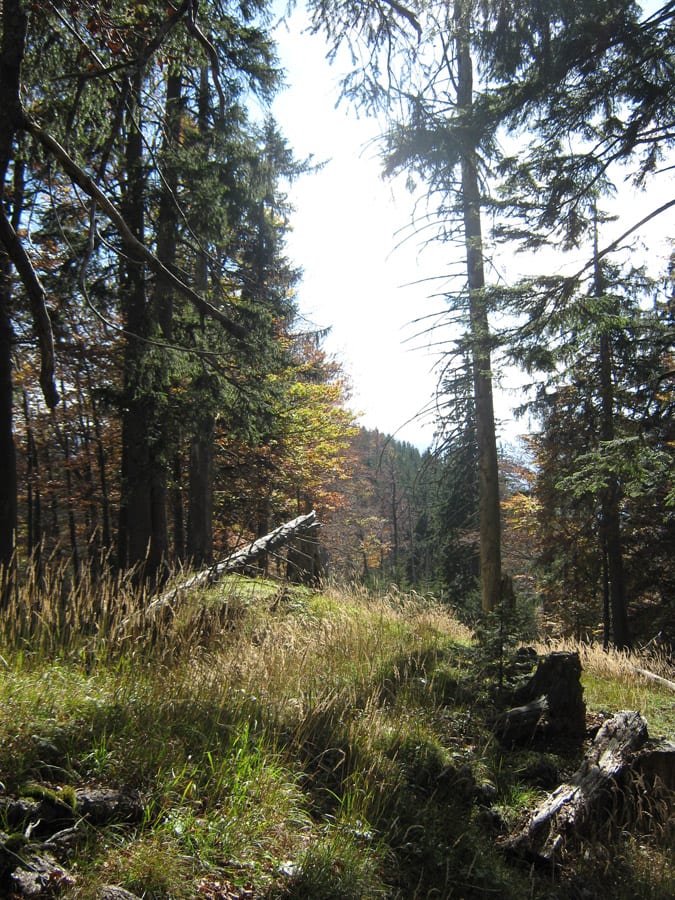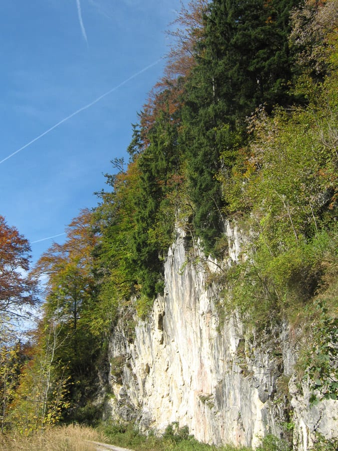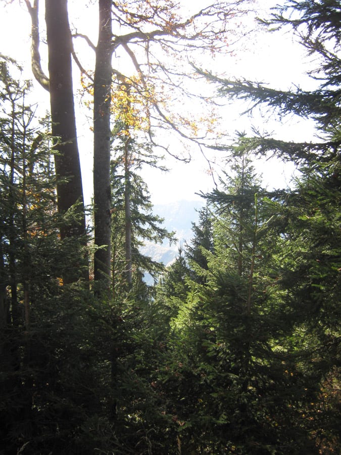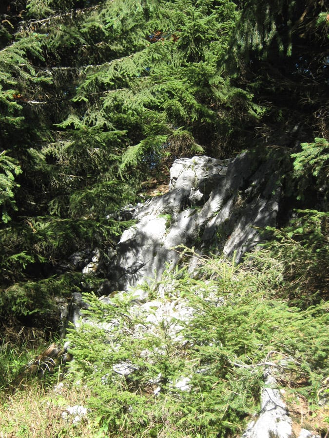 Und jetzt erklär ich die Sache mit dem abweisenden Kerl. Bis ca. 1.100hm kommt man über die Forstraßen (und Abkürzungen) recht einfach hinauf. Dann aber hat der Höhenberg rundherum entweder fast senkrechte Felsen oder derart steile Hänge, dass nicht einmal ich raufkommen würde … ihr könnt euch vorstellen, wie es dem Herr dabei erginge 🙂