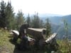 Dann runter und diesmal nicht über die Abkürzung weiter sondern über die Forststraße rund um den Höhenberg.  Dort kommt man beim Steintisch vorbei, der ist eine richtige Sehenswürdigkeit (Achtung: Wortspiel :-): für eine gemütliche Pause mit Jause und schon wieder mit super Ausblick.