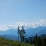 Also gibt es Rundum-Fotos (beinahe ganz rundherum – der Ausblick von hier ist wirklich toll) aber die Jause dann ein paar Meter weiter unten in einem kleinen Waldstück mit Schatten.