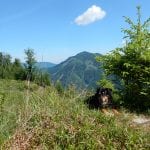 Ein paar Bäche führen nach den Regenfällen der letzten Woche Wasser und das macht die Wanderung für die Ronja und mich auch sehr angenehm. Am Gipfel aber ist es für uns zwei dann doch recht heiß: vor ein paar Jahren wurde der nämlich quasi kurzgeschoren und nach diesem Kahlschlag hat es die Natur nicht ganz leicht – Büsche mit Schatten sind hier noch immer Fehlanzeige.