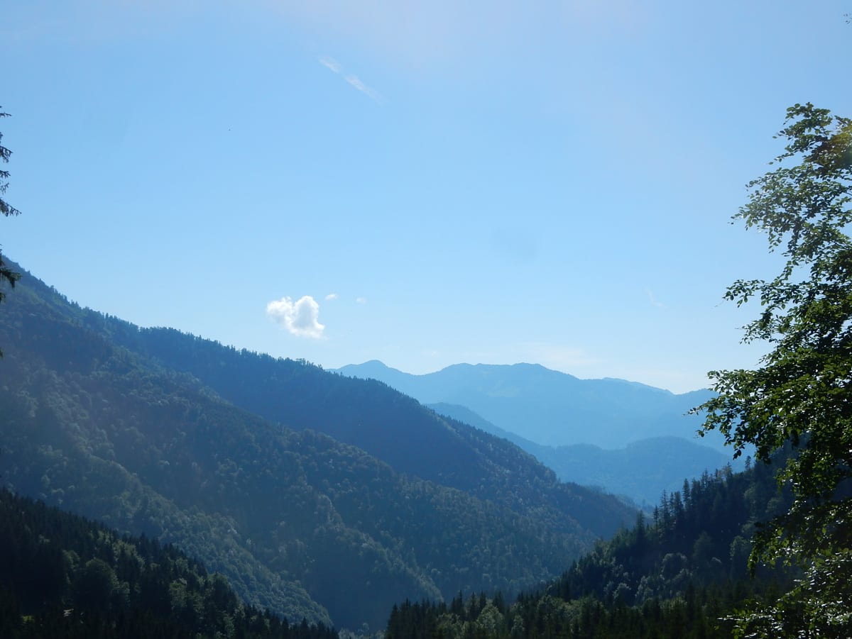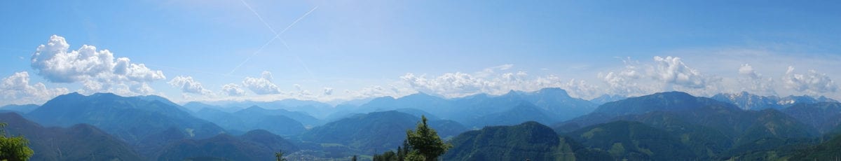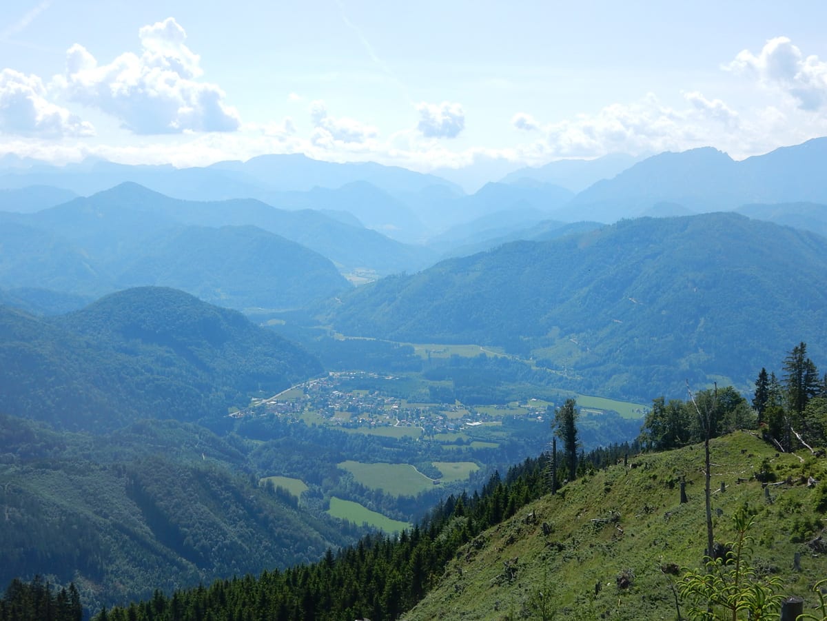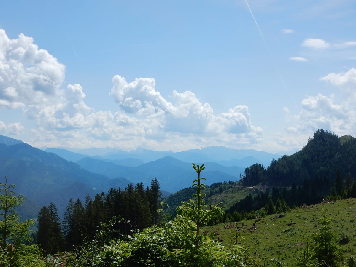 Also gibt es Rundum-Fotos (beinahe ganz rundherum – der Ausblick von hier ist wirklich toll) aber die Jause dann ein paar Meter weiter unten in einem kleinen Waldstück mit Schatten.
