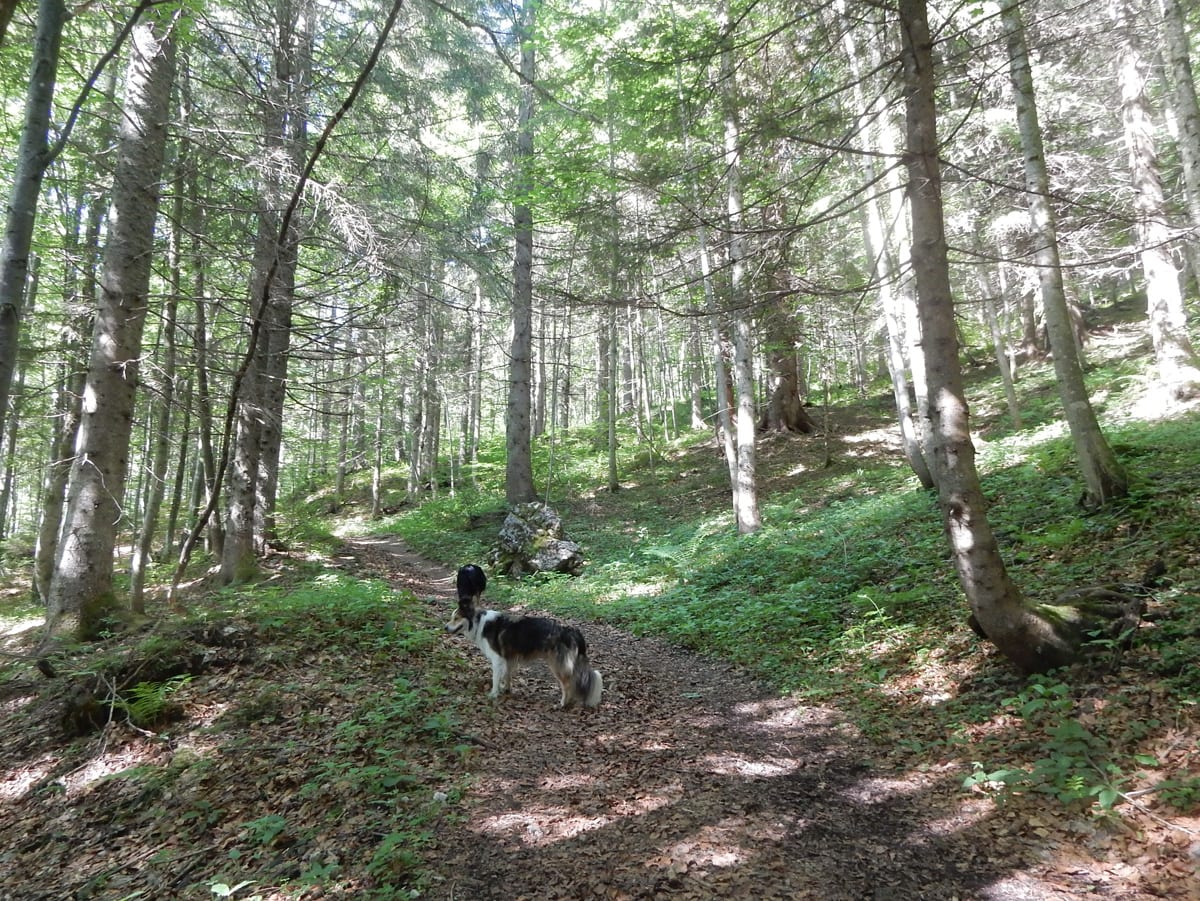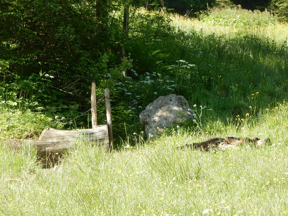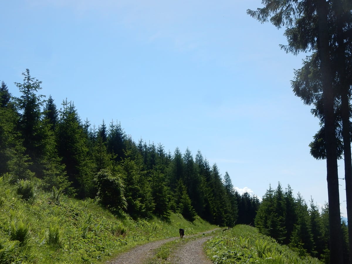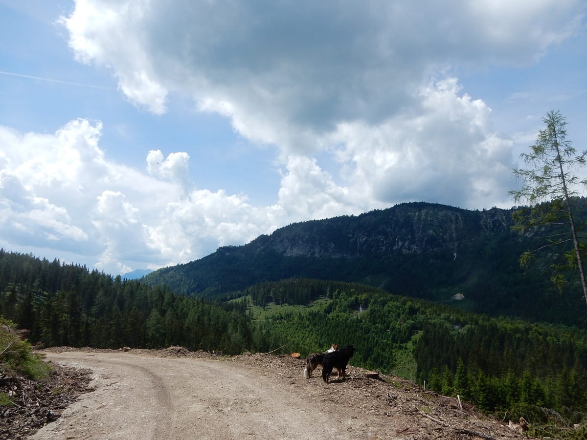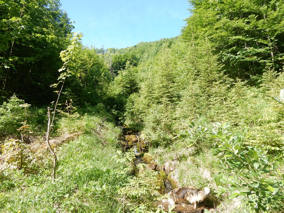 Ein paar Bäche führen nach den Regenfällen der letzten Woche Wasser und das macht die Wanderung für die Ronja und mich auch sehr angenehm. Am Gipfel aber ist es für uns zwei dann doch recht heiß: vor ein paar Jahren wurde der nämlich quasi kurzgeschoren und nach diesem Kahlschlag hat es die Natur nicht ganz leicht – Büsche mit Schatten sind hier noch immer Fehlanzeige.