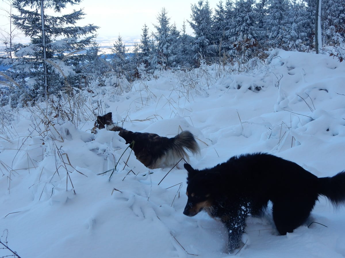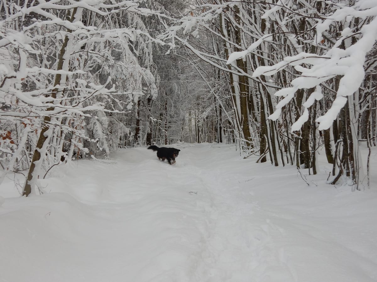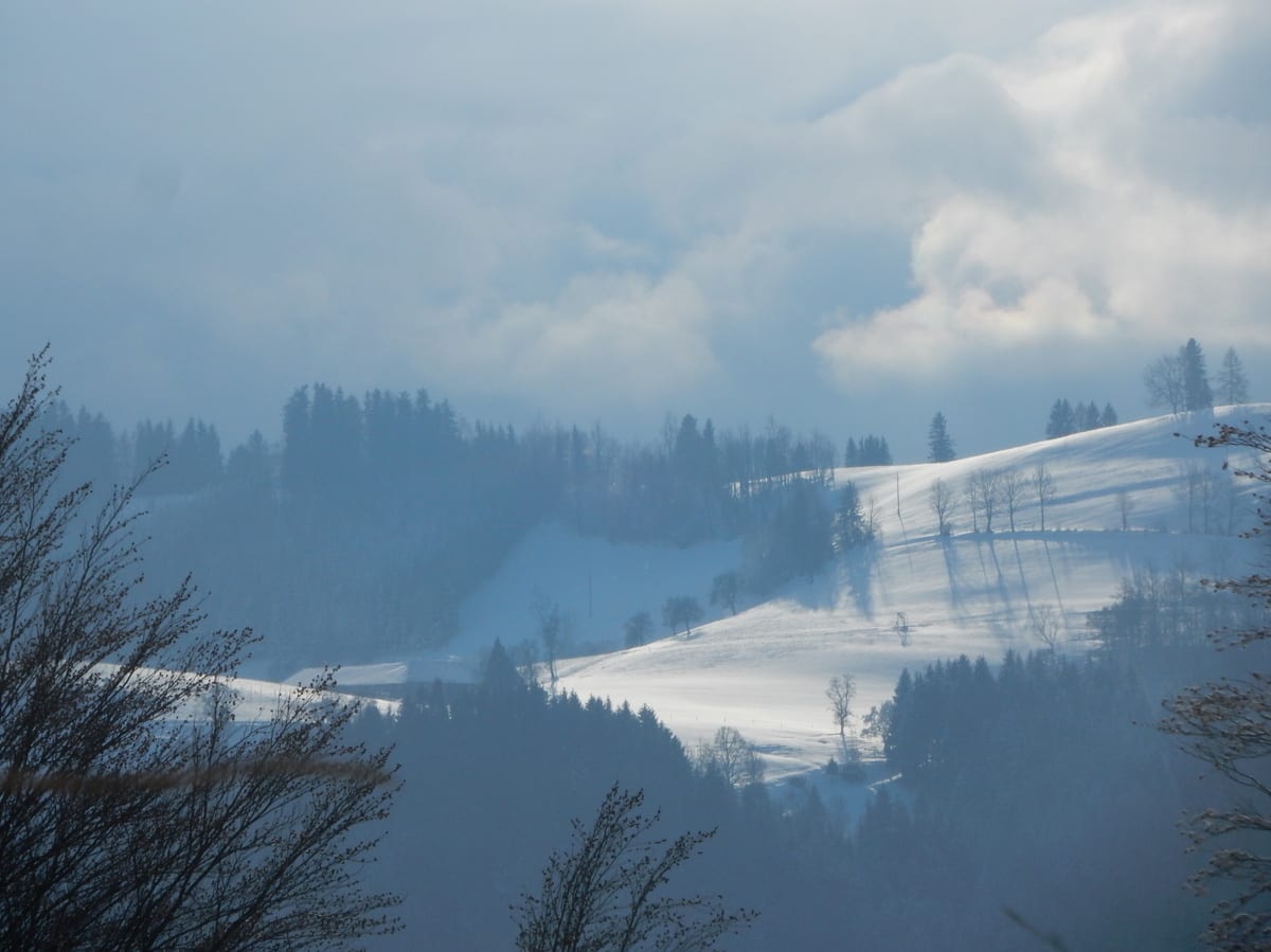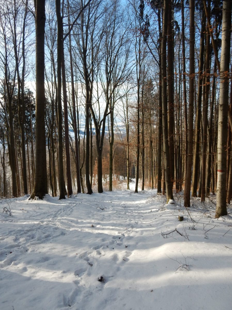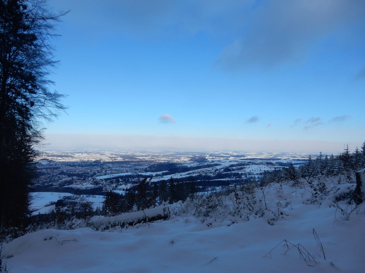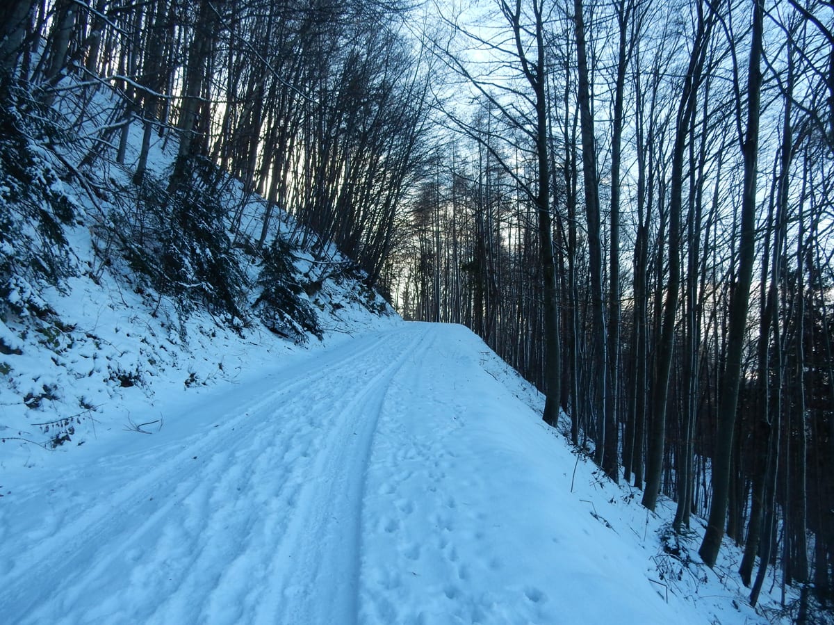Weiter oben liegt viel mehr Schnee als vor ein paar Tagen. Begonnen haben wir unten mit 5cm, am höchsten Punkt bei ca. 750m sind es mehr als 20cm. Das ist dann zwar anstrengend, aber bei der Kälte (-10°) macht es gar nichts, wenn man ein bisserl schwitzt.