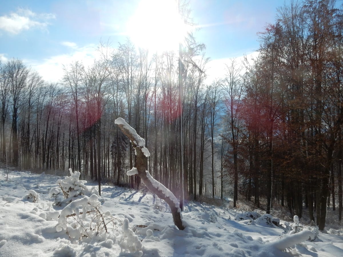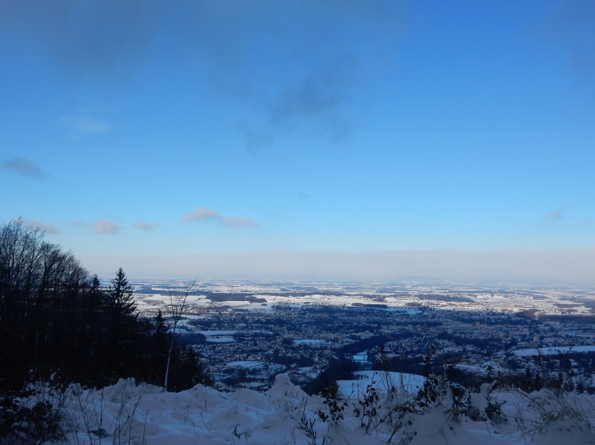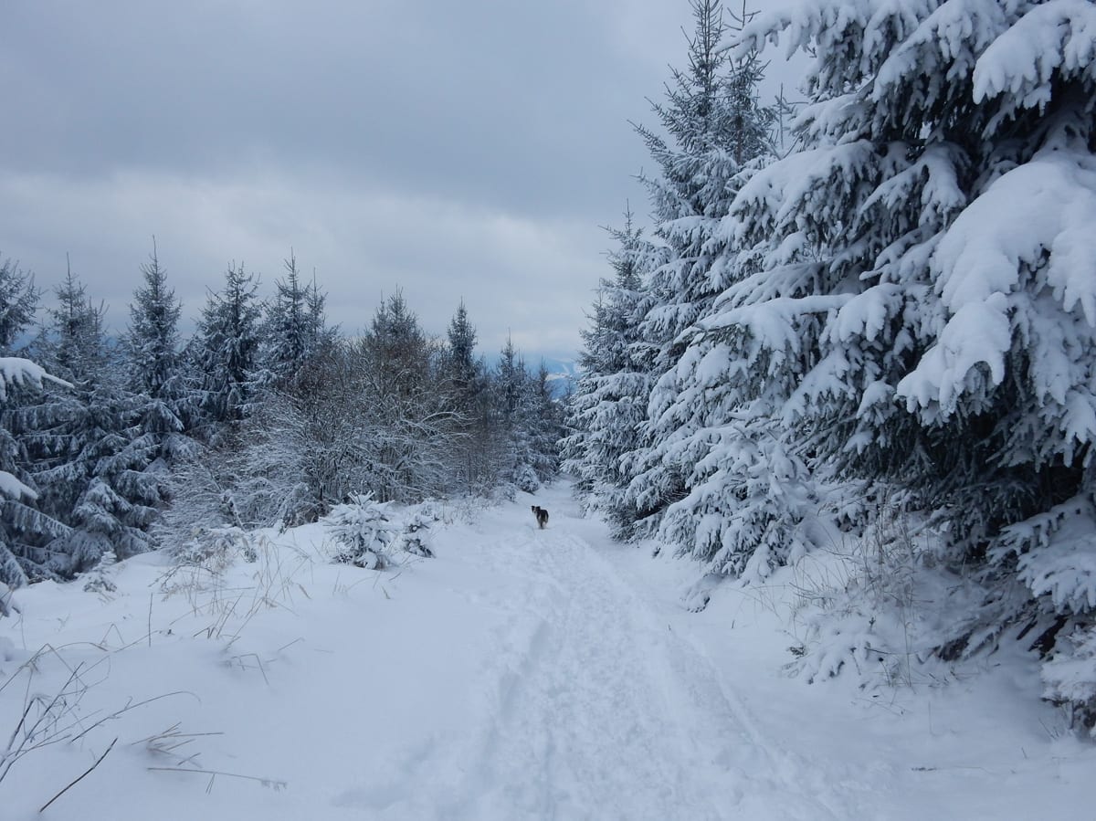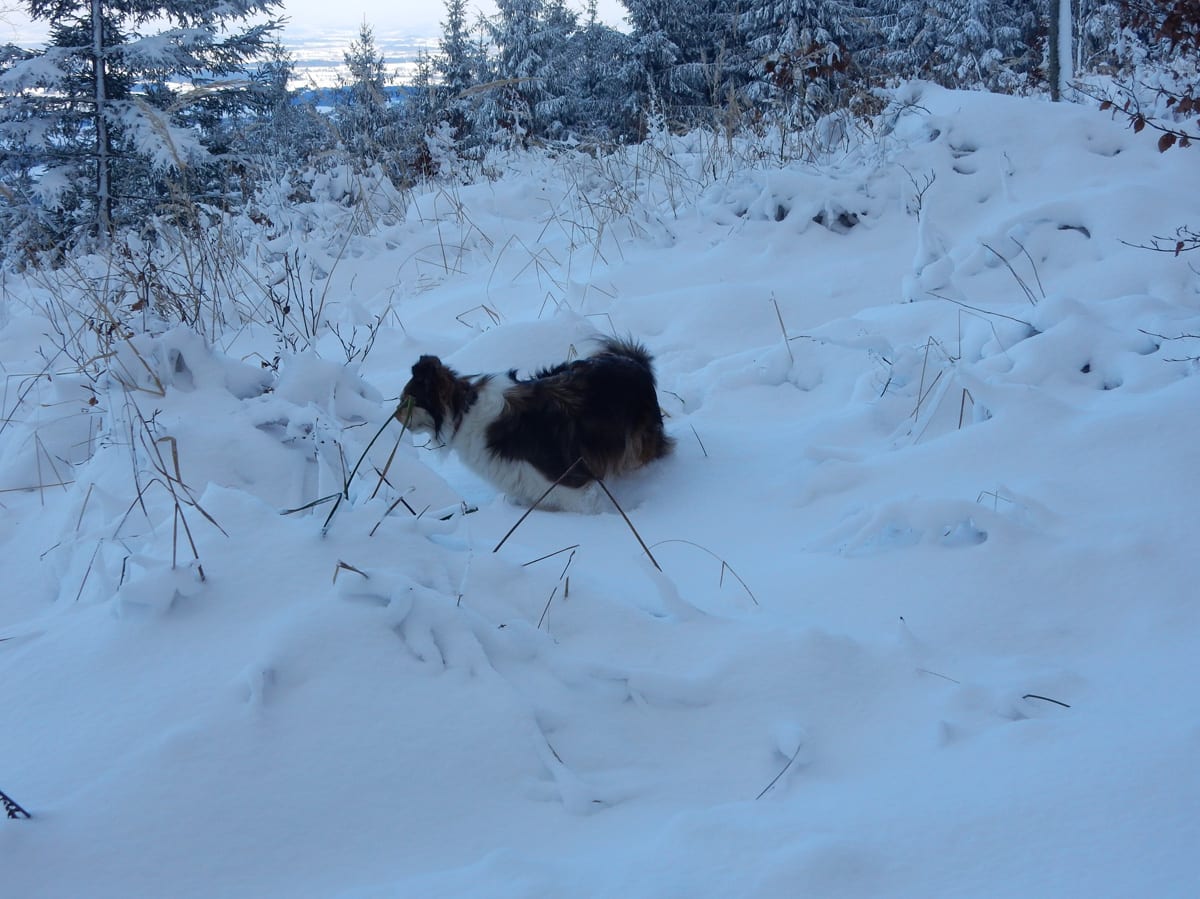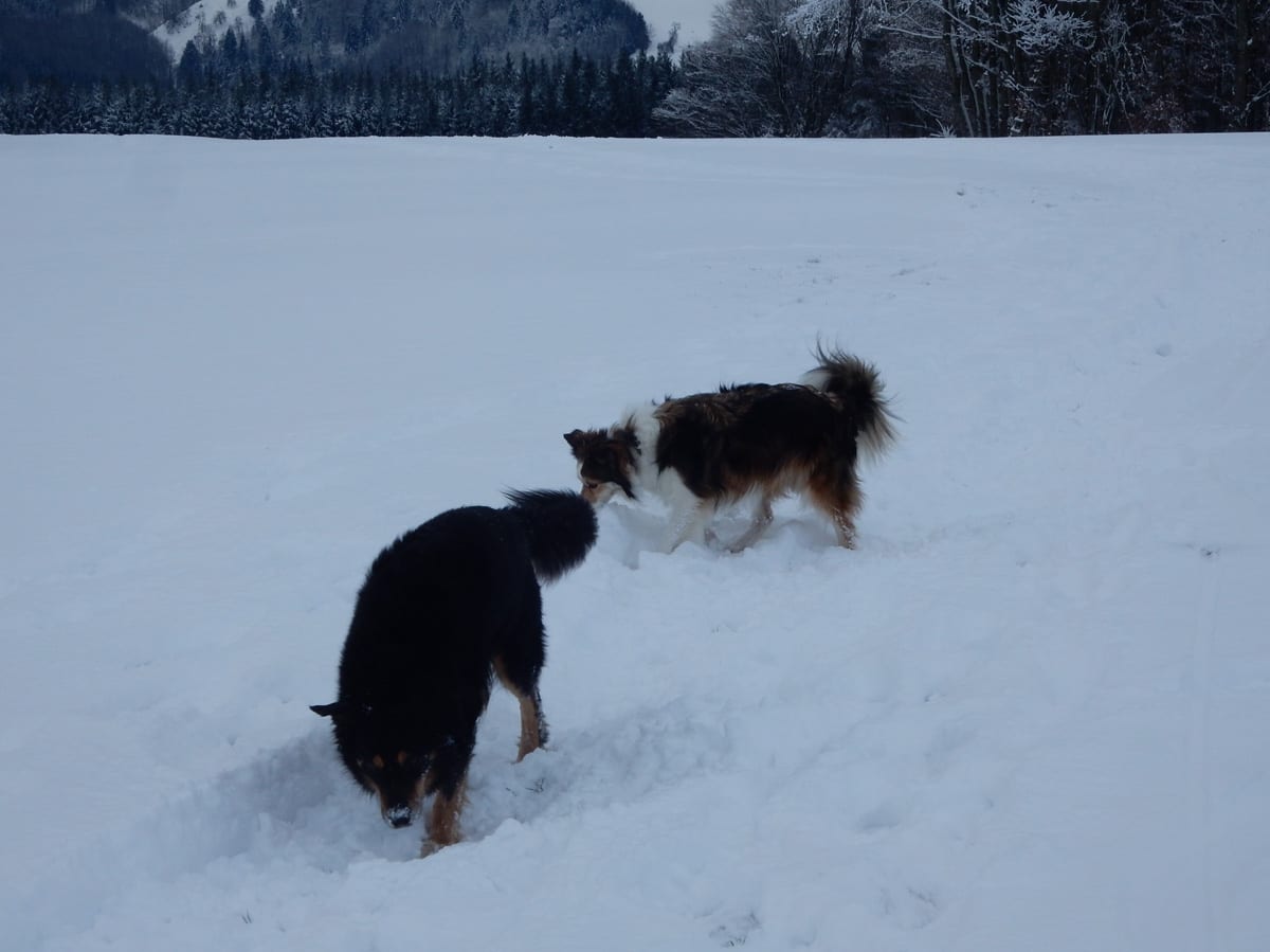Weiter oben liegt viel mehr Schnee als vor ein paar Tagen. Begonnen haben wir unten mit 5cm, am höchsten Punkt bei ca. 750m sind es mehr als 20cm. Das ist dann zwar anstrengend, aber bei der Kälte (-10°) macht es gar nichts, wenn man ein bisserl schwitzt.