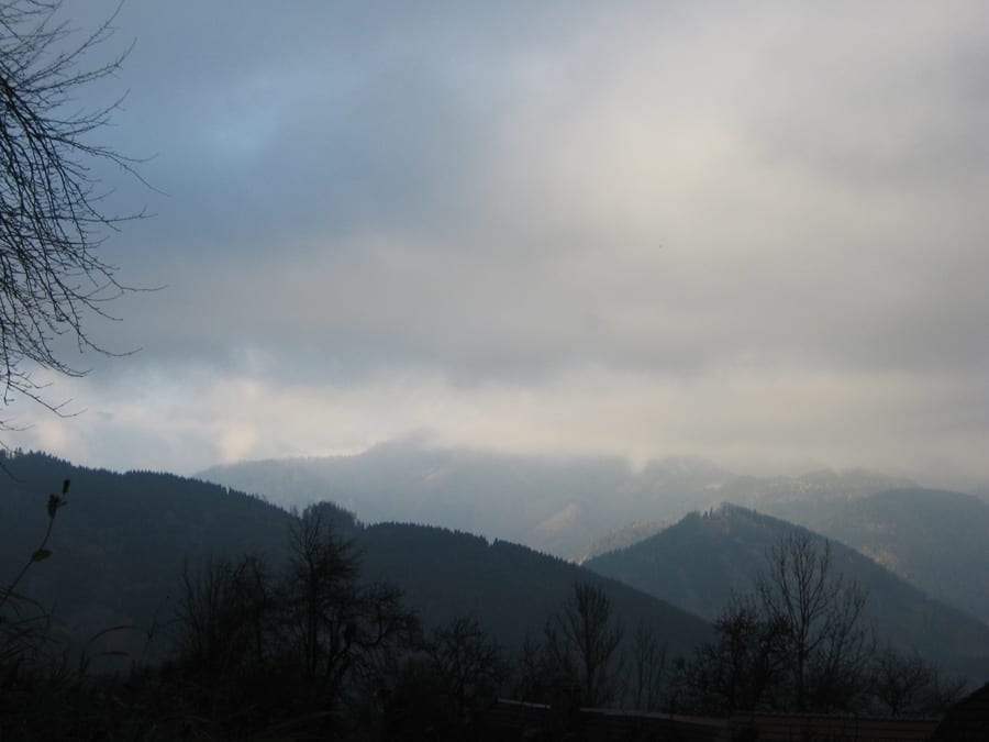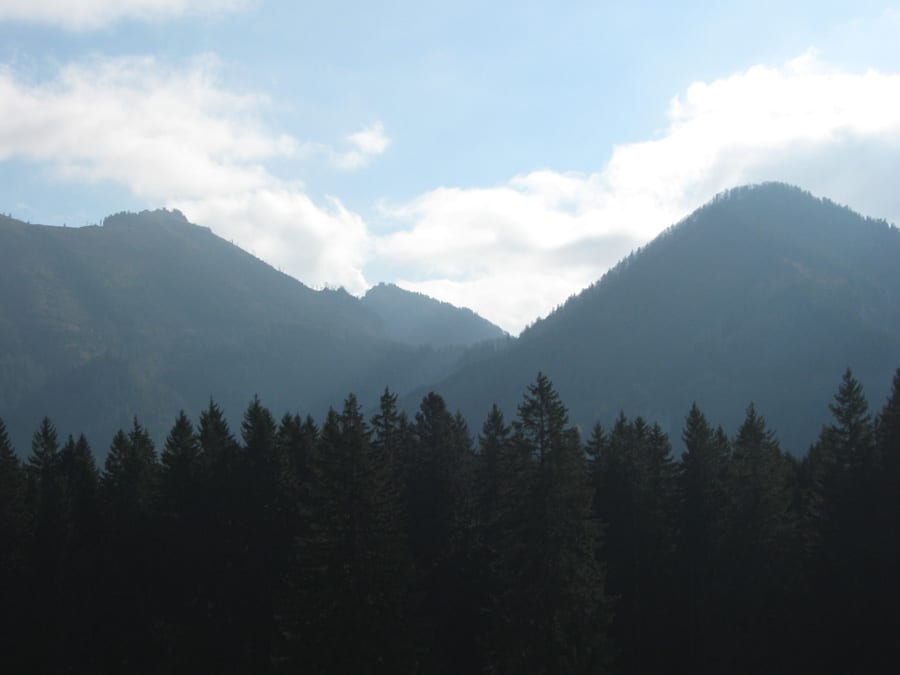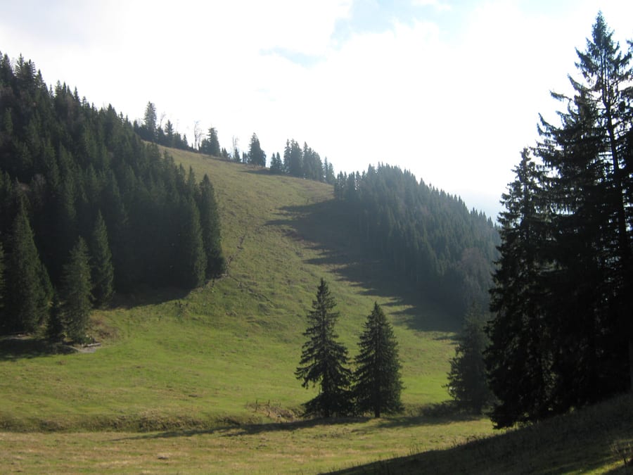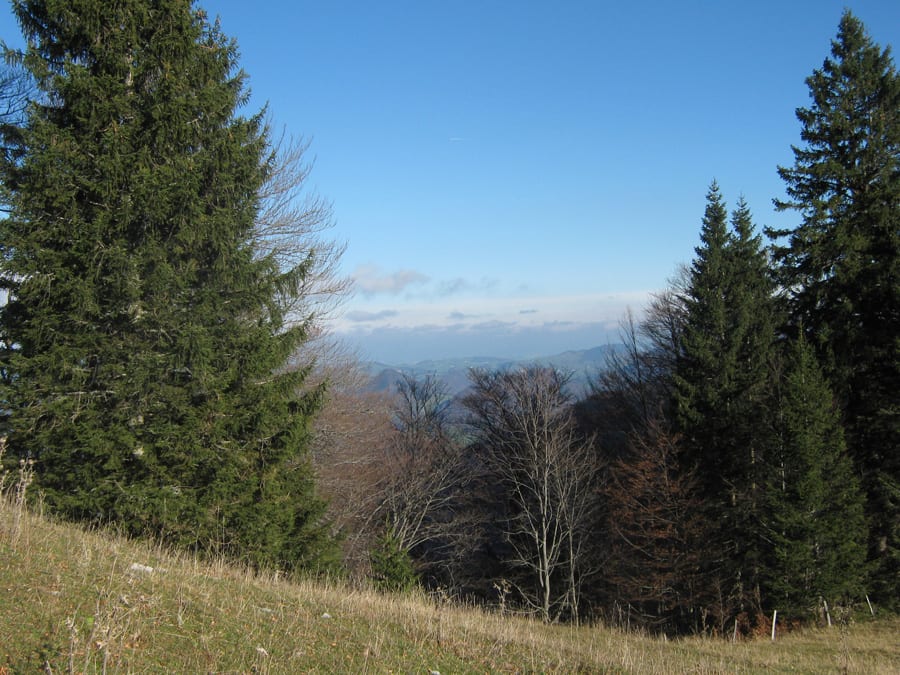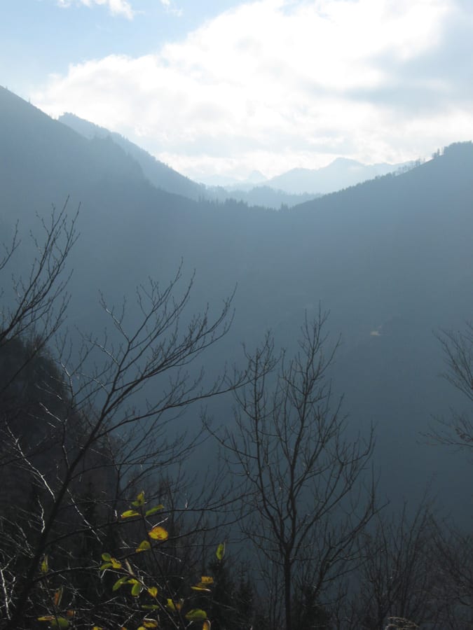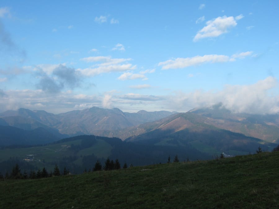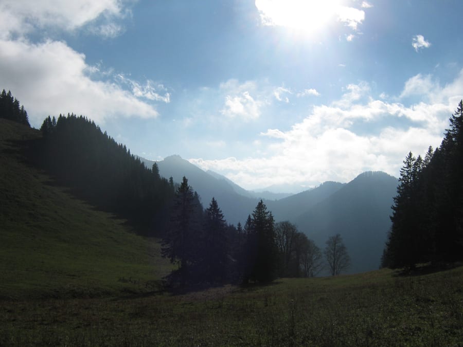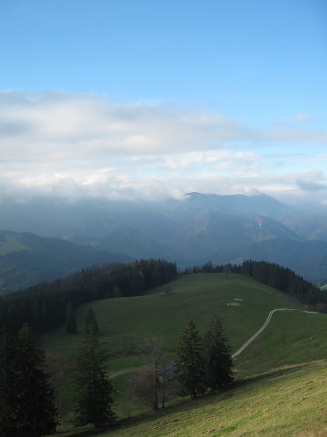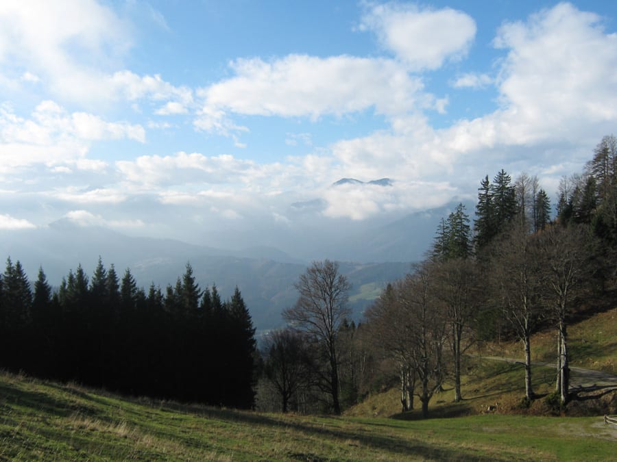 Es fängt bewölkt und und fönig an. Der Fön ist unten warm und je weiter man hinauf kommt, desto kühler – sehr angenehm!