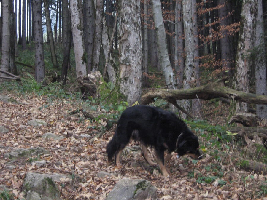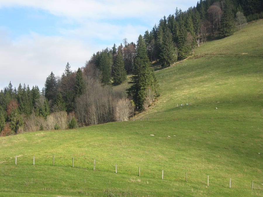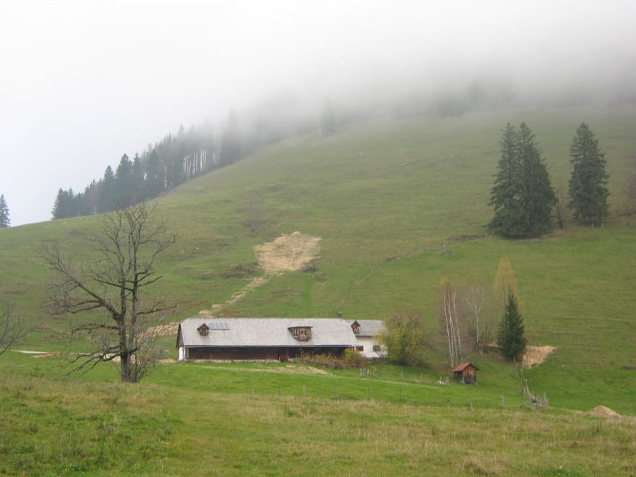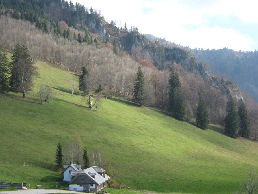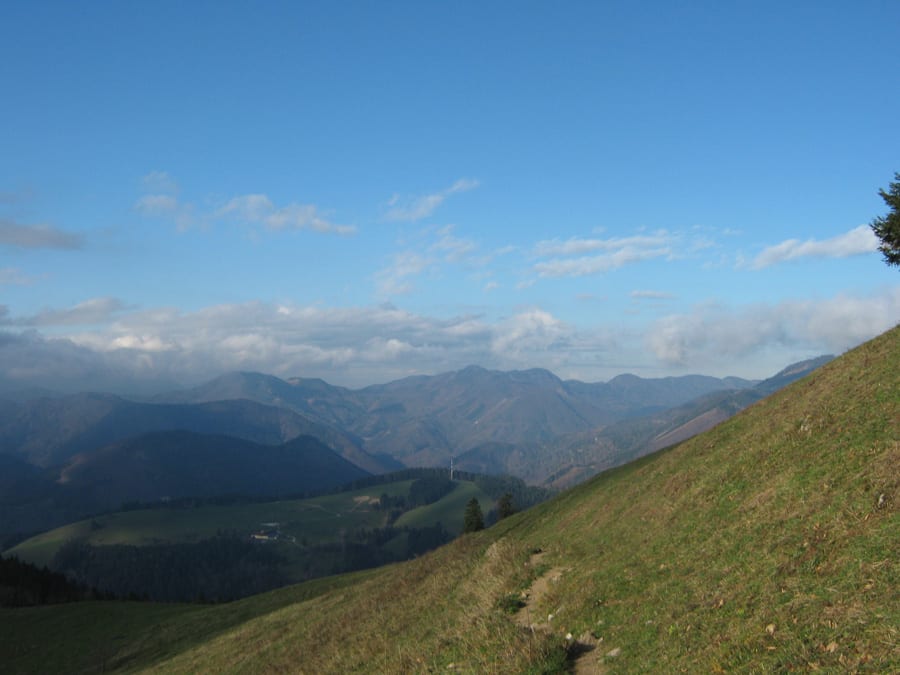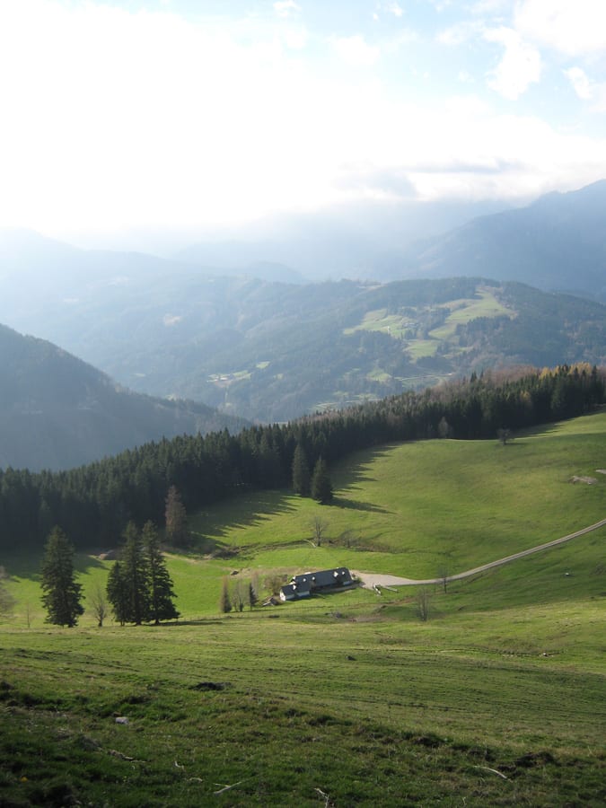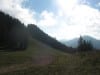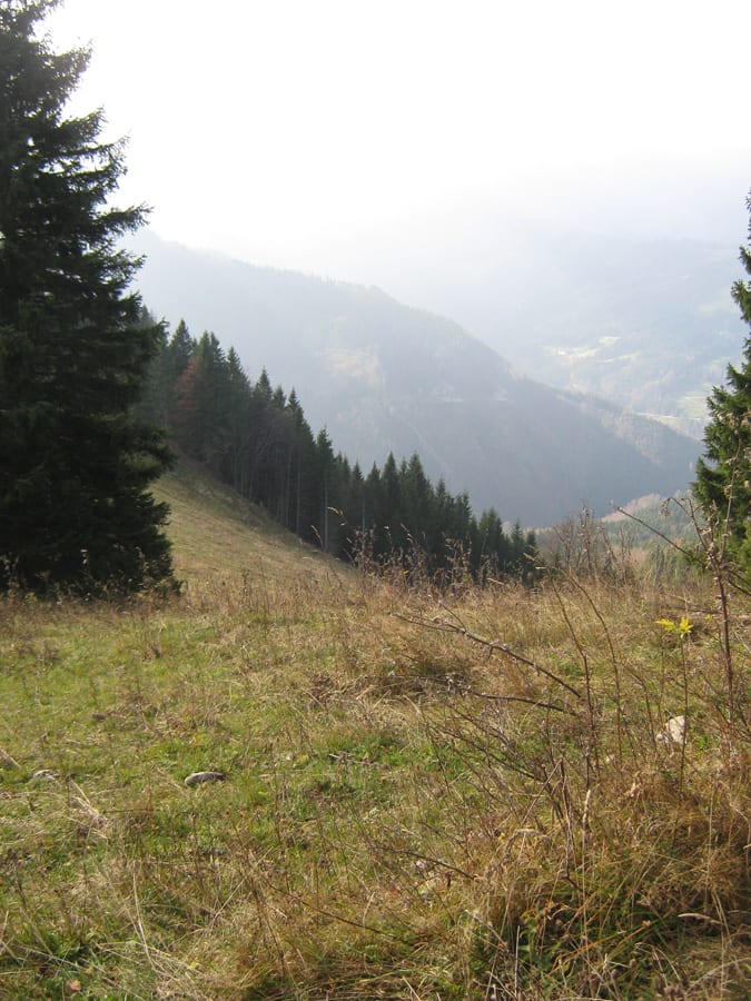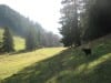 Heute aber sehen wir kaum Menschen und wenn, dann nur ganz in der Ferne. Also hinauf zur Geschwendalm (954m) und über den Almboden hinauf zur Gamssteinalm (1153m) . Das letzte Stück vor der Gamsteinalm ist ziemlich steil mit viel losem Gestein. Da muss man aufpassen, wenn jemand oberhalb geht.