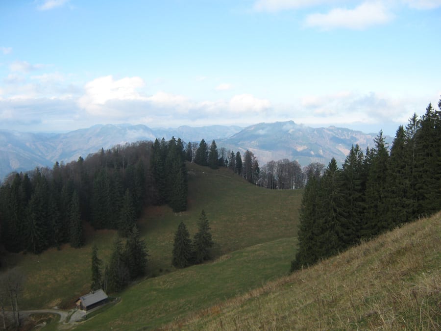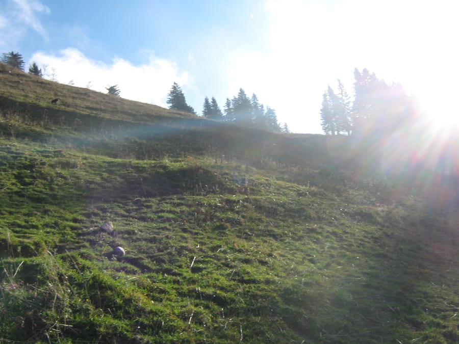 Auf dem Rückweg machen wir einen kleinen Bogen zu einer Anhöhe in der Gamssteinalm – von dort hat man einen super Ausblick auf den Gamsstein.