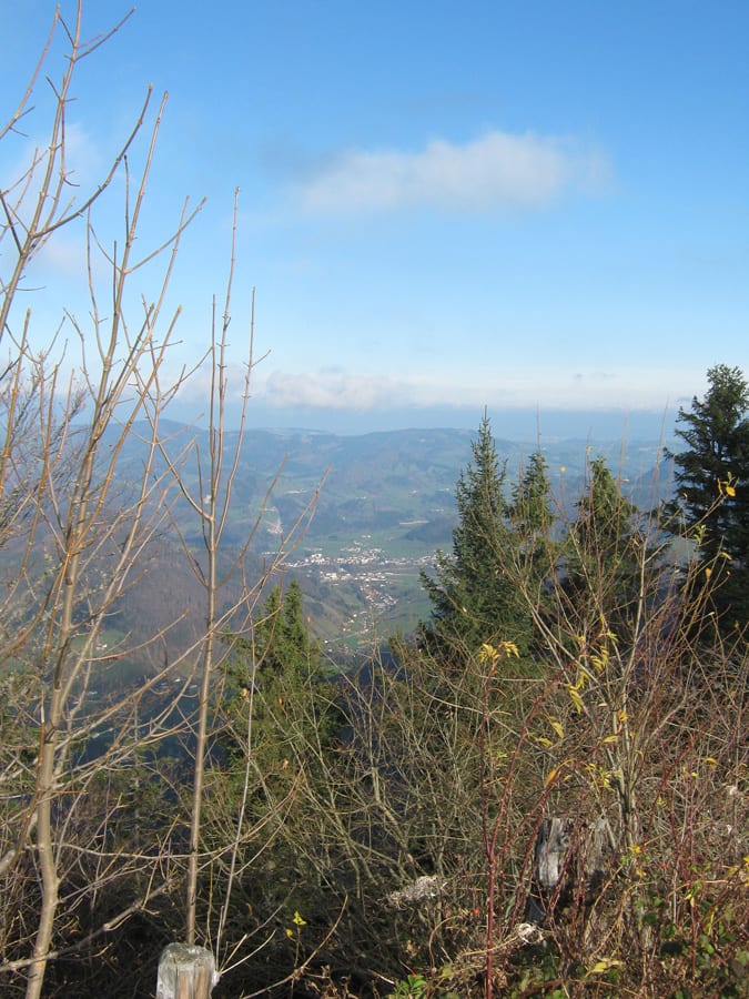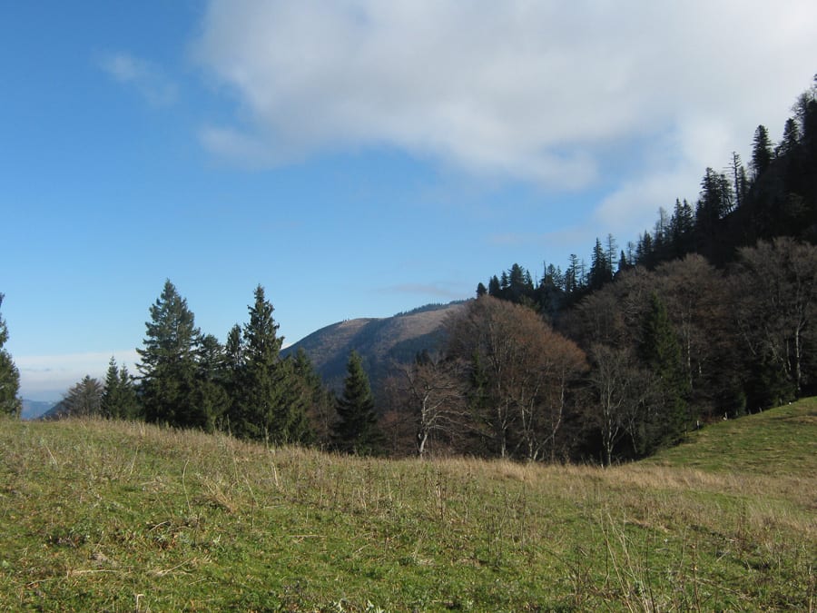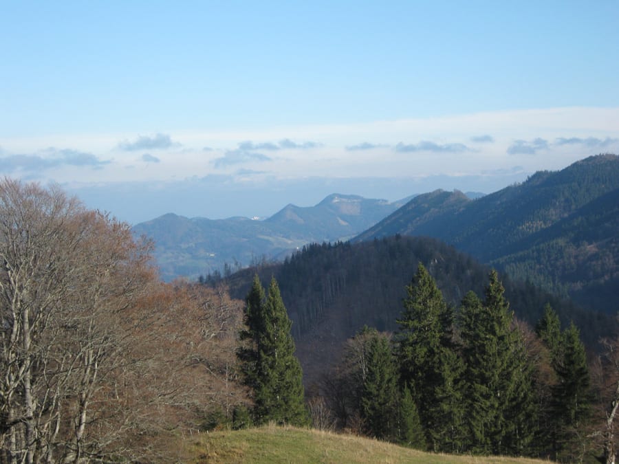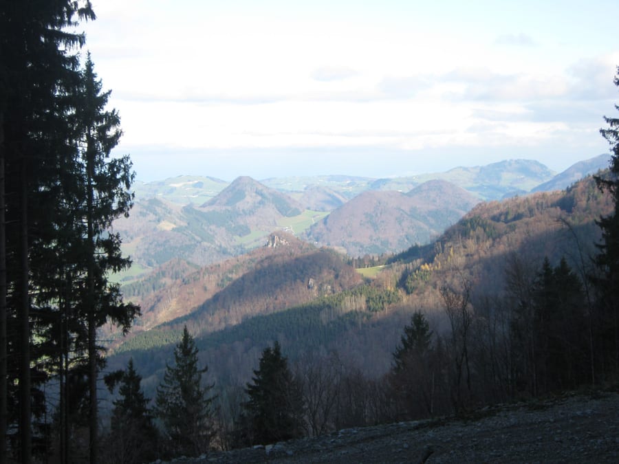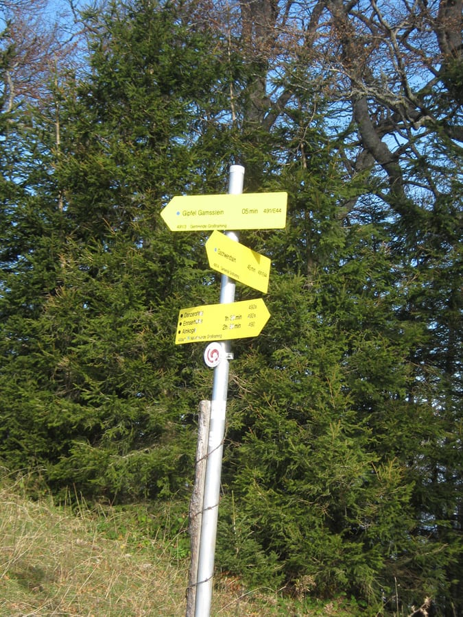 Über die Gamssteinalm ist dann der letzte Anstieg bis zum Gamsstein und nach 1½ Stunden (Rekord!) waren wir oben am Gipfel (1275m) . Zwischendurch ist die Sonne durchgekommen und es gibt jede Menge Sonnenschein.