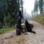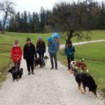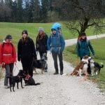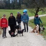 Heute ist auch der zweite Henry mit dabei und damit sind wir (Vierbeiner) mit 8 ganz knapp in der Überzahl (weils nur 7 Menschen sind): Nera & Nellie mit Regina und Melanie, Gem & Henry mit Lisa, Emily & Luna mit Sandra, Marie und Leo. Ja genau: und die Ronja, s’Herrl und ich.