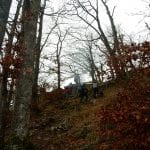 So kommen wir bequem und beinahe ganz ohne auf andere Lebewesen zu treffen über die Forststraße bis zum Gipfel. Dort ist es für uns alle zusammen etwas eng und rutschig; und außerdem wegen des Windes auch gar nicht so gemütlich und deshalb machen wir Pause auf der Lichtung ein Stück unterhalb.