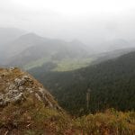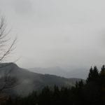 Mit den Ausblicken ist es heute nicht weiter her (oder besser gesagt „weit hin“), weil alles, was man in der Ferne sehen könnte, hinter Wolken bleibt. Aber der Regen bei uns ist meistens nur ganz leicht und hin und wieder sogar ganz weg.