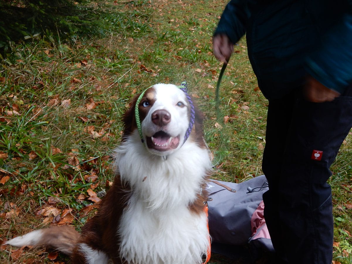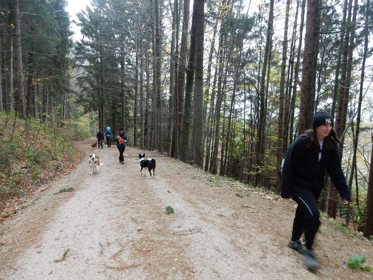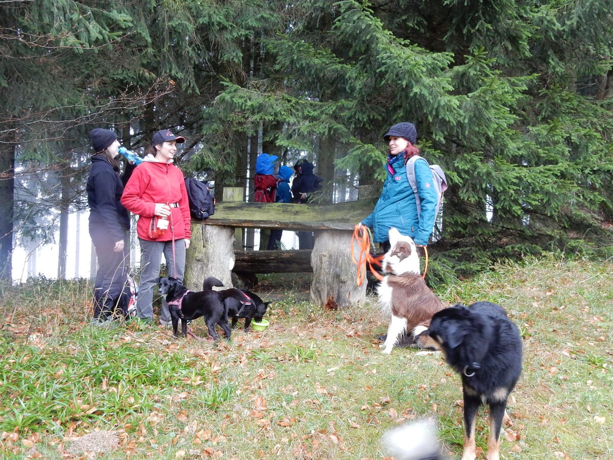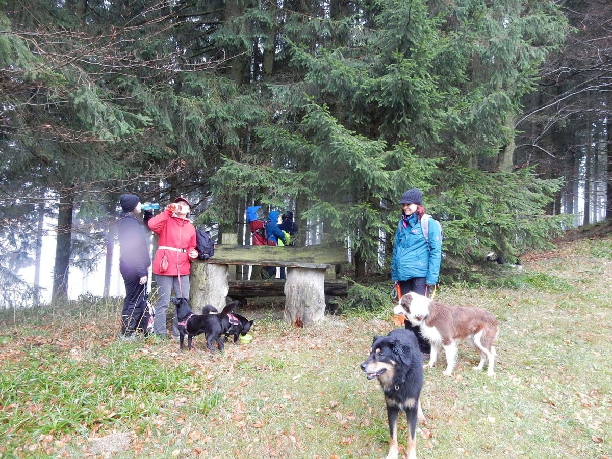 Heute ist auch der zweite Henry mit dabei und damit sind wir (Vierbeiner) mit 8 ganz knapp in der Überzahl (weils nur 7 Menschen sind): Nera & Nellie mit Regina und Melanie, Gem & Henry mit Lisa, Emily & Luna mit Sandra, Marie und Leo. Ja genau: und die Ronja, s’Herrl und ich.