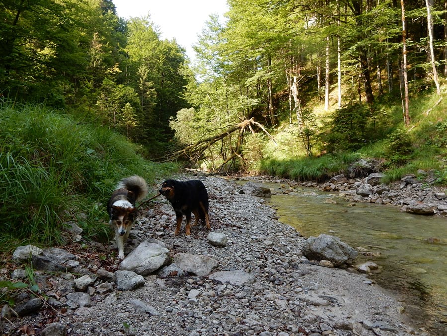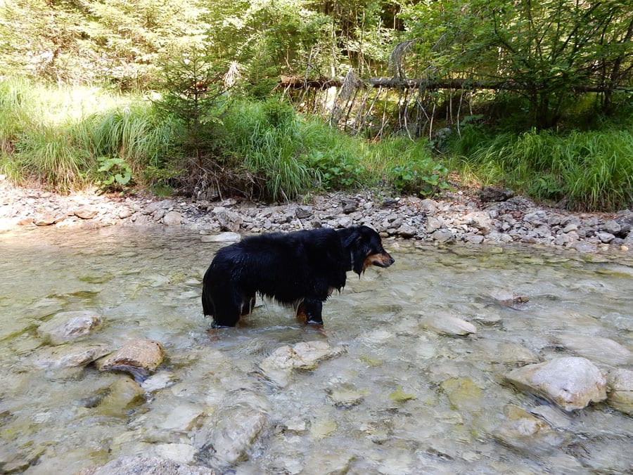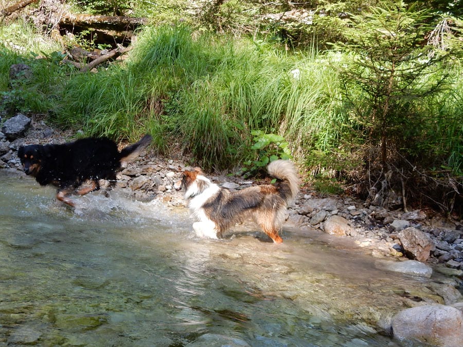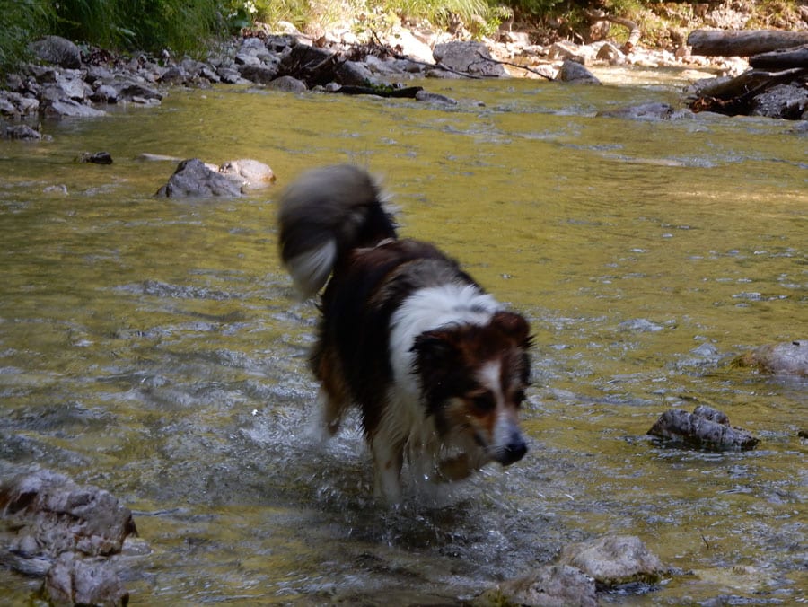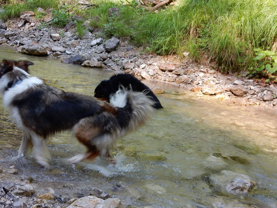 Zu heiß für eine Tour bergauf, gerade richtig für einen Tag im Hundeparadies am Weissenbach.