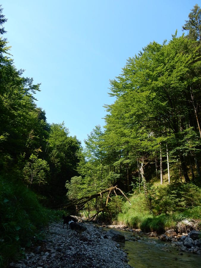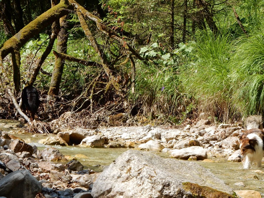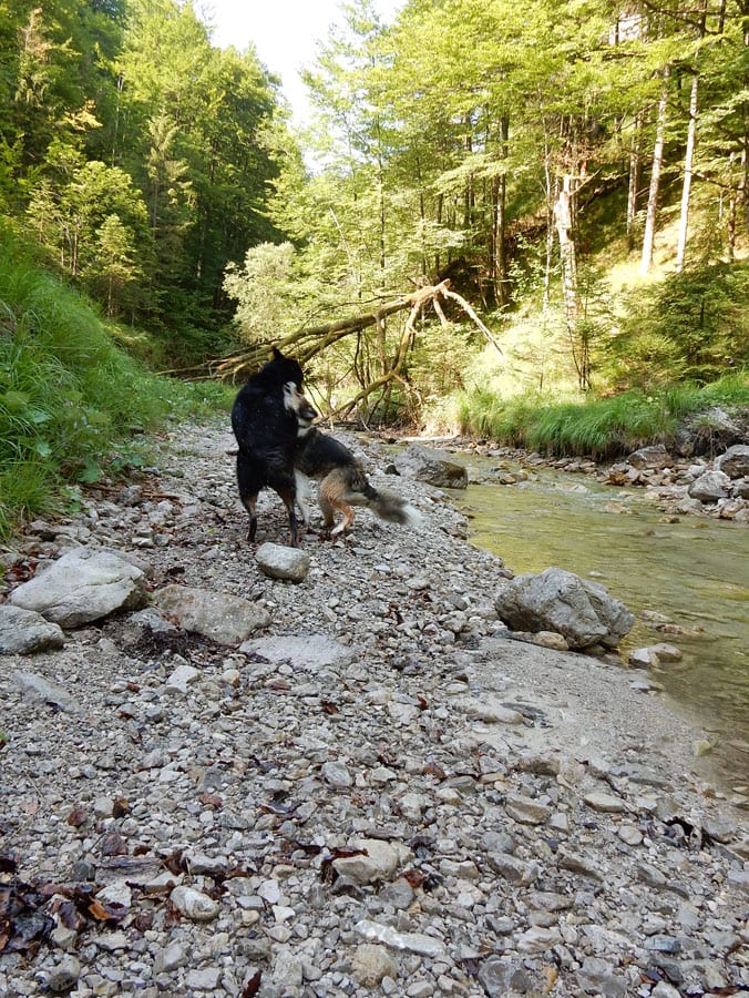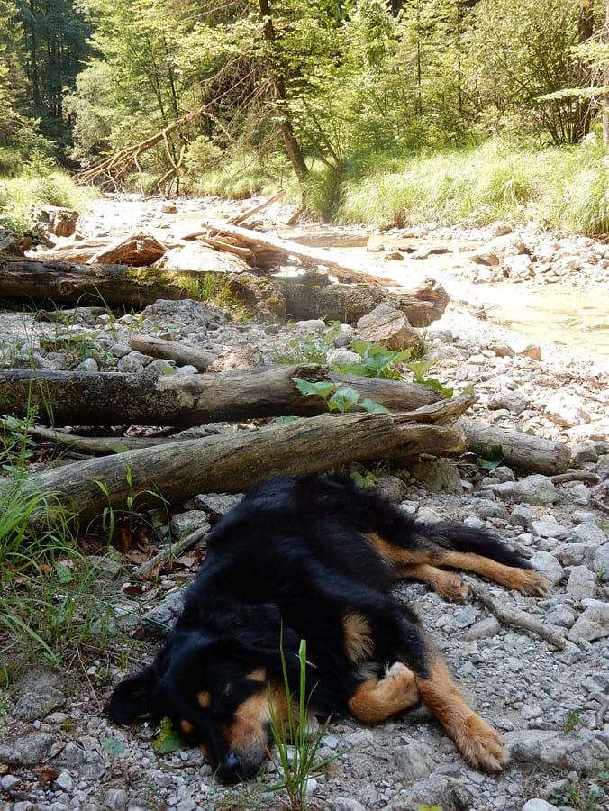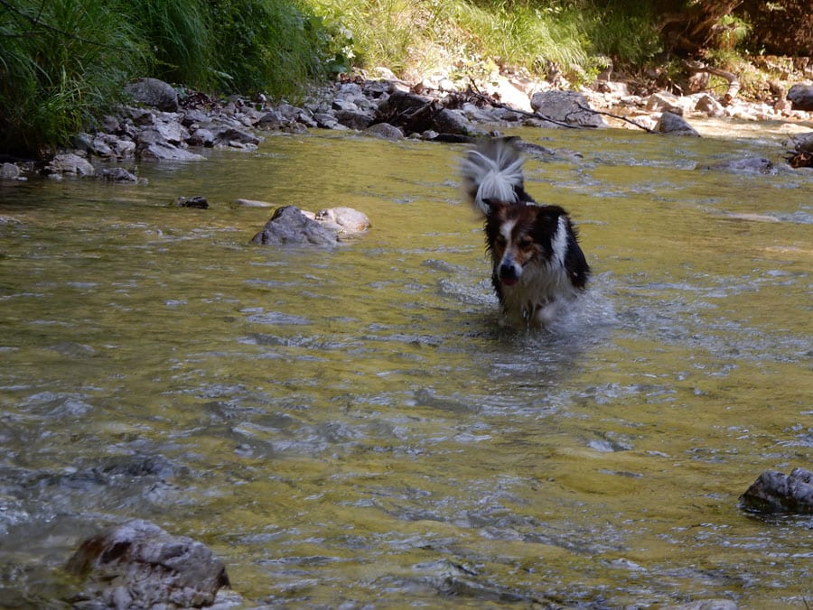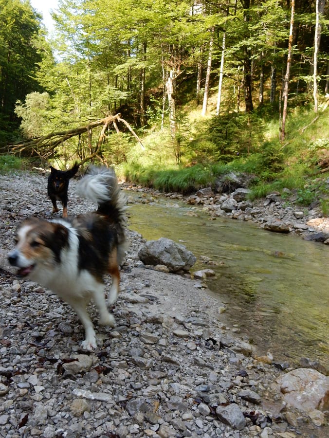 Zu heiß für eine Tour bergauf, gerade richtig für einen Tag im Hundeparadies am Weissenbach.